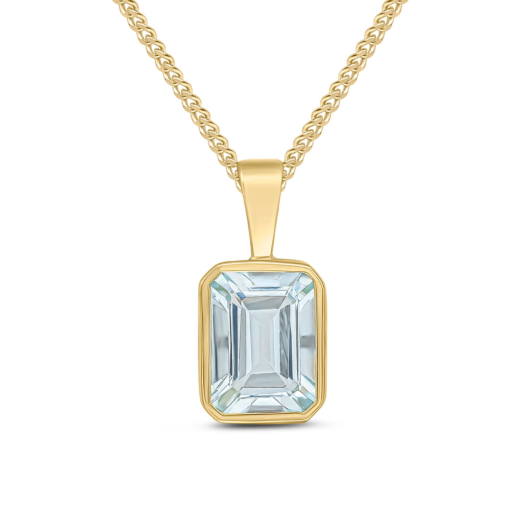 9CT Yellow Gold Octagonal Aquamarine Rubover Pendant 8x6mm