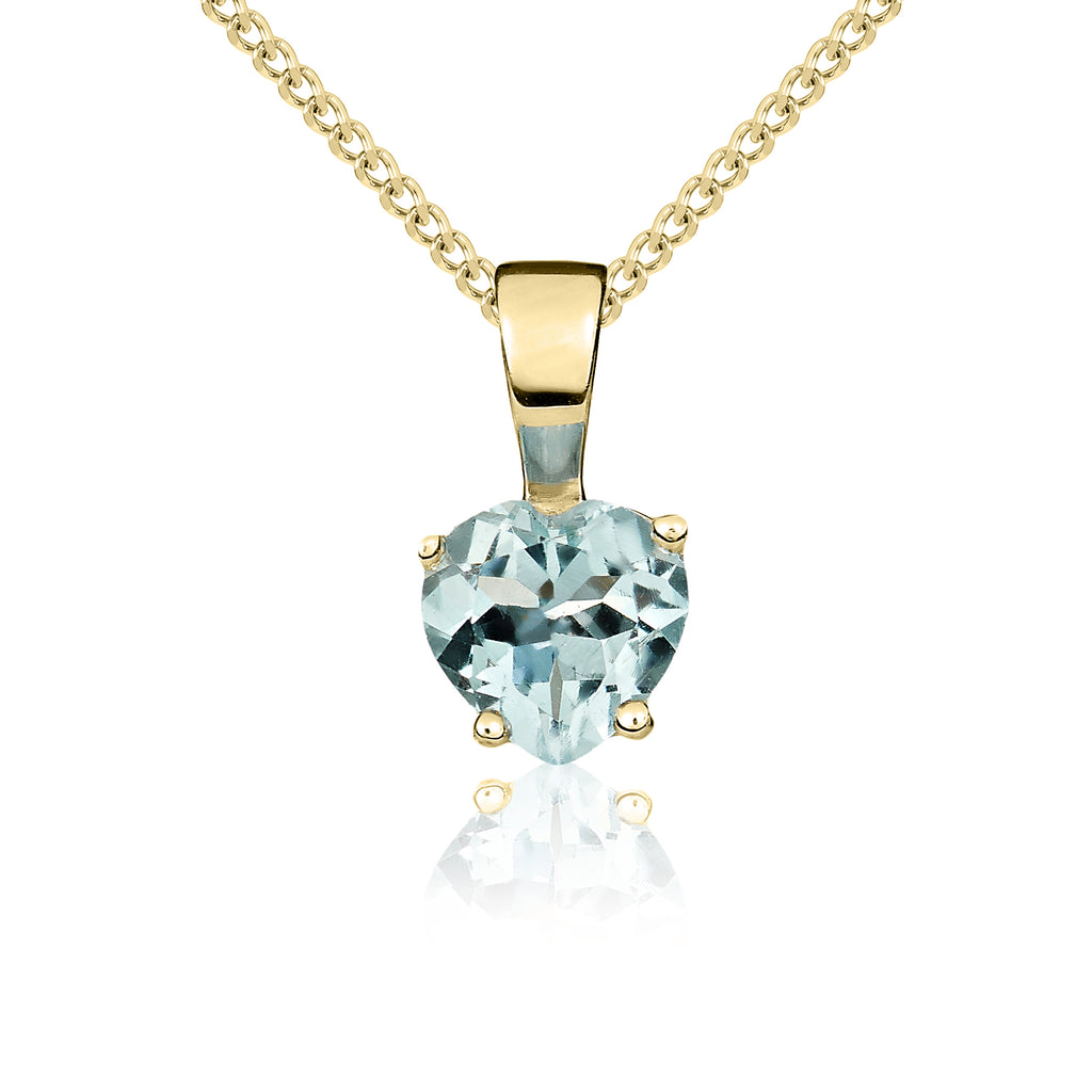 9CT Yellow Gold Heart Aquamarine Claw Pendant 6mm