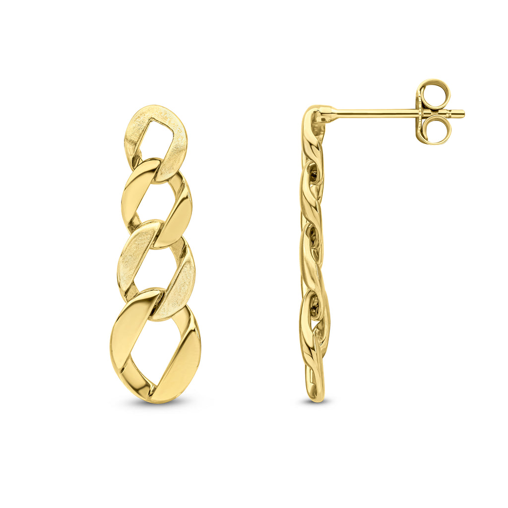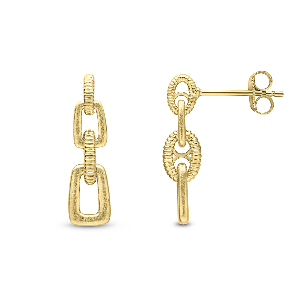 9CT Yellow Gold Satin & Ribbed Link Drop Earrings 20mm