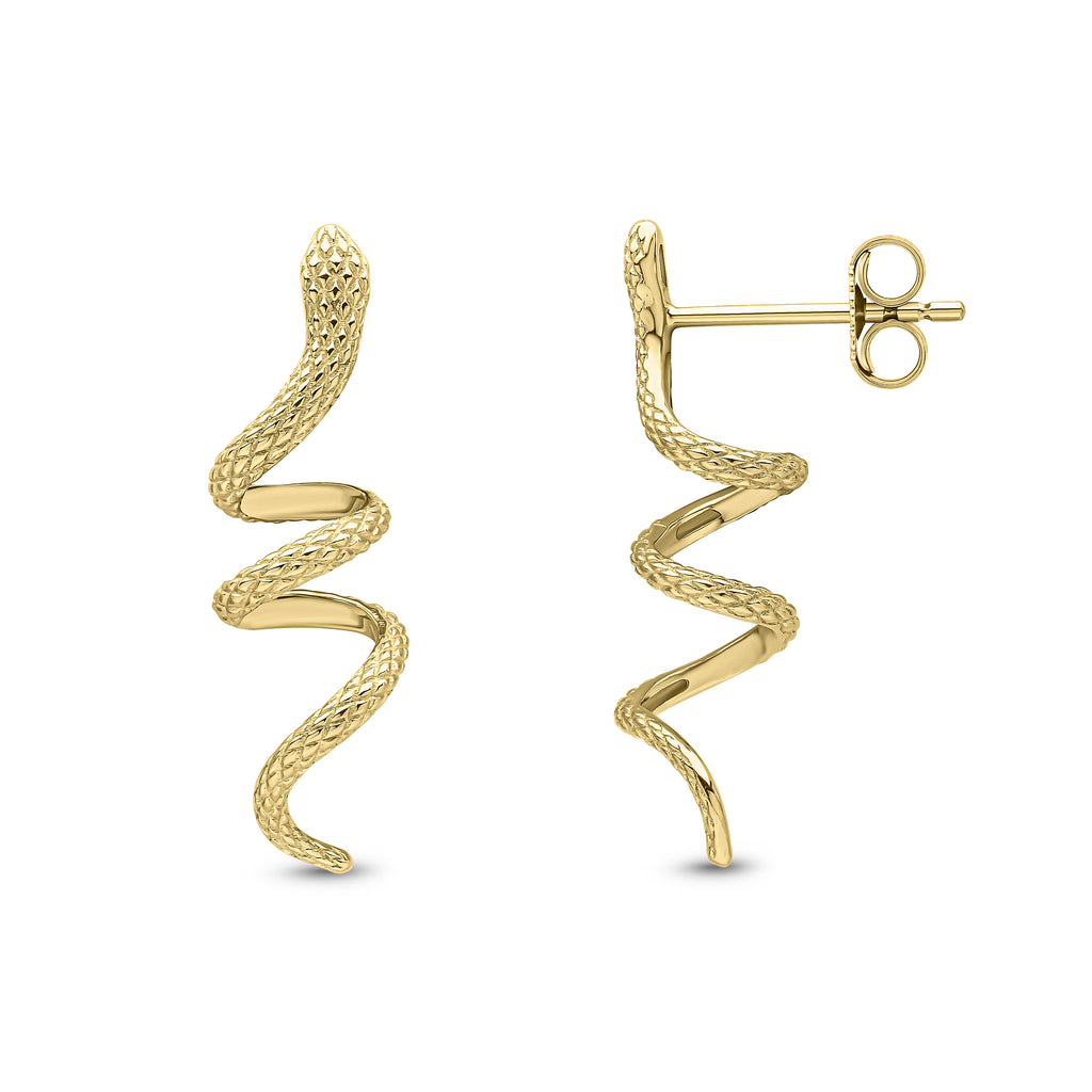 9CT Yellow Gold Textured Coiled Snake Drop Earrings 25mm