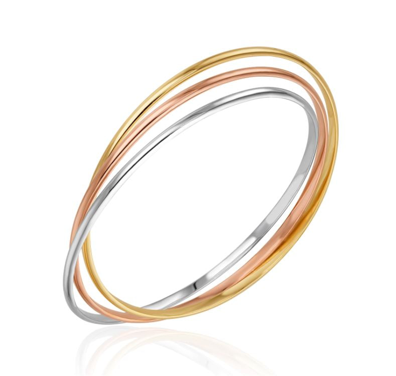 9CT Three Tone Yellow, White & Rose Gold Solid Russian Round Bangle