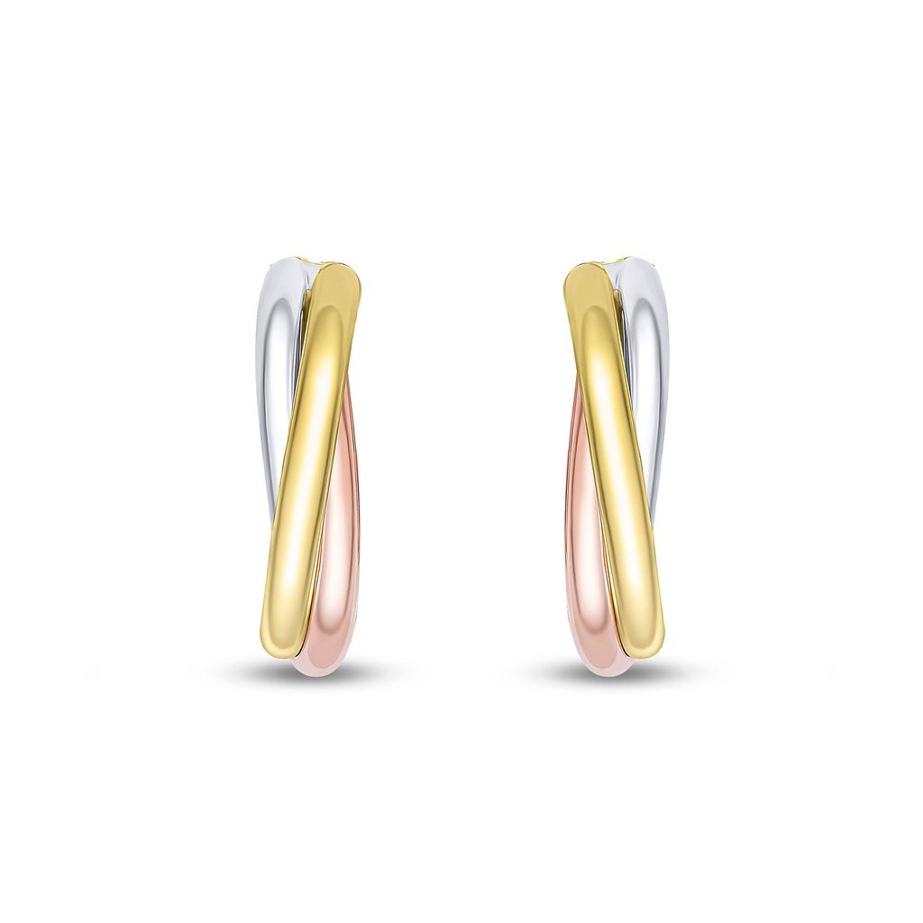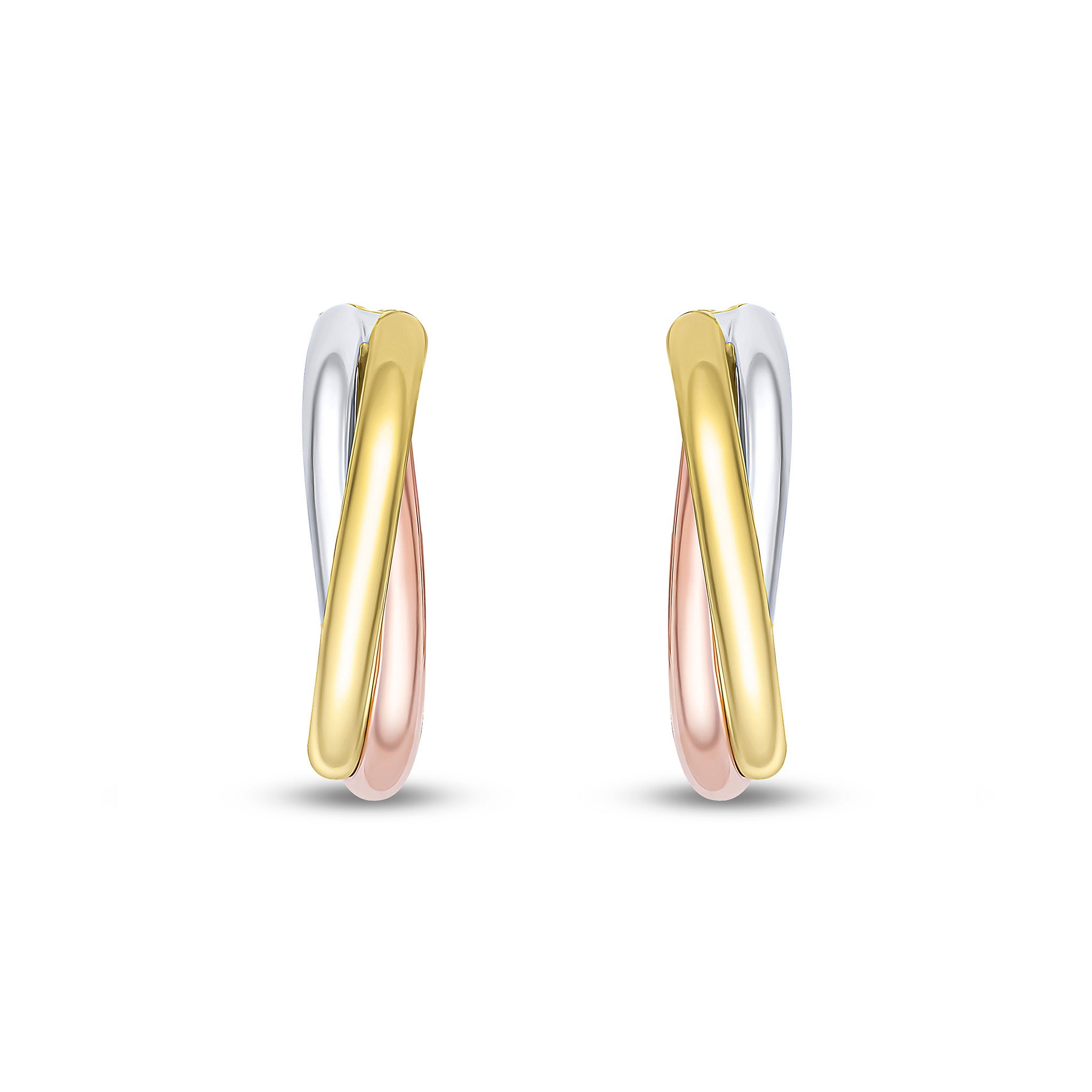 9CT Three Tone Yellow, White & Rose Gold Russian Style Hoop Earrings 18x14mm
