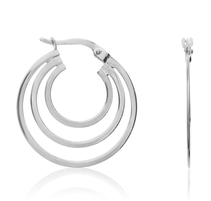 9CT White Gold Triple Hoop Earrings 22.5x5mm