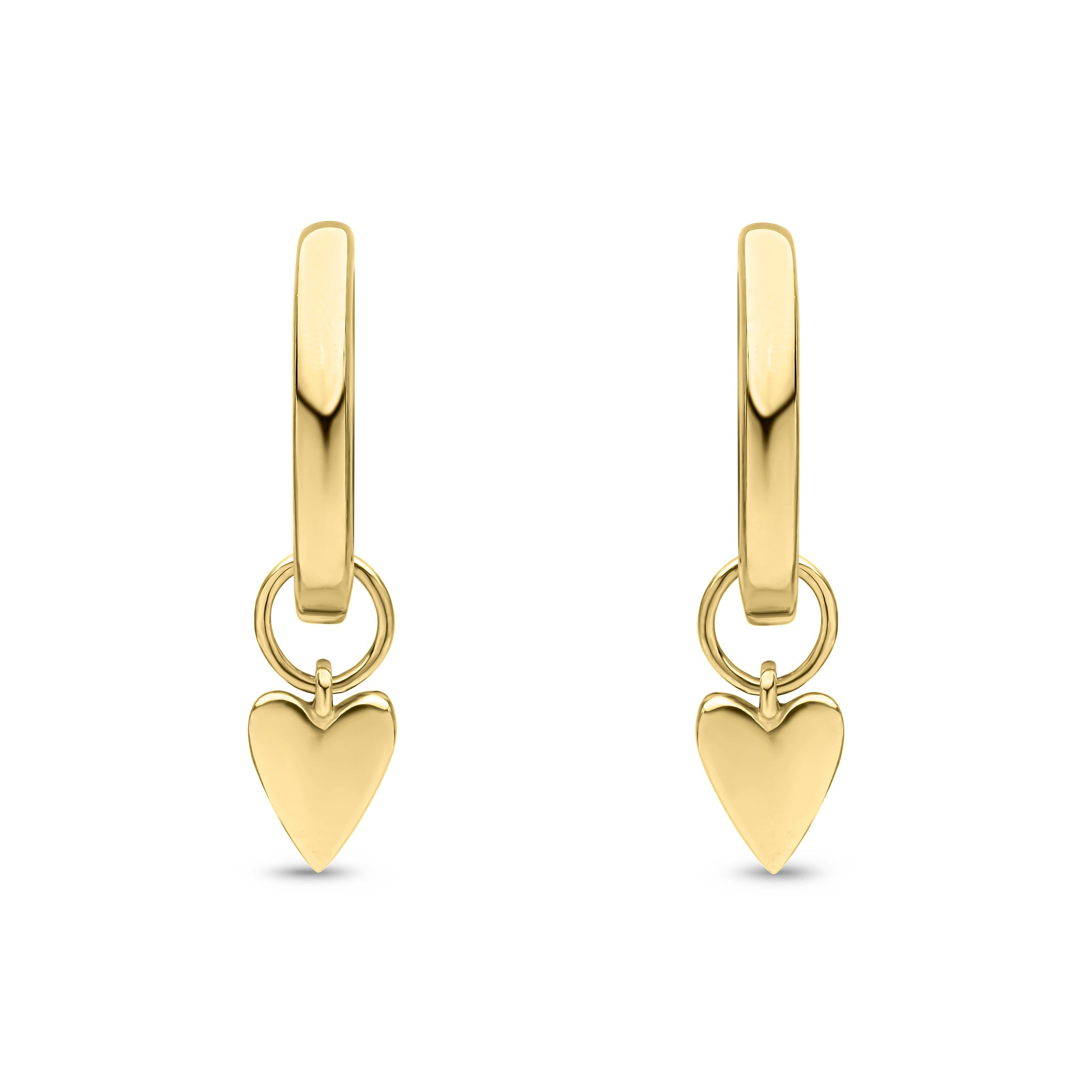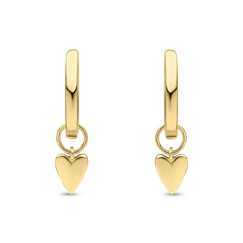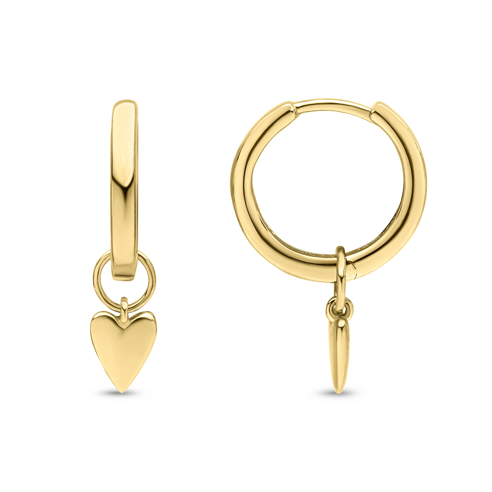9CT Yellow Gold Hinged Hoop Earrings with Detachable Polished Heart Drop