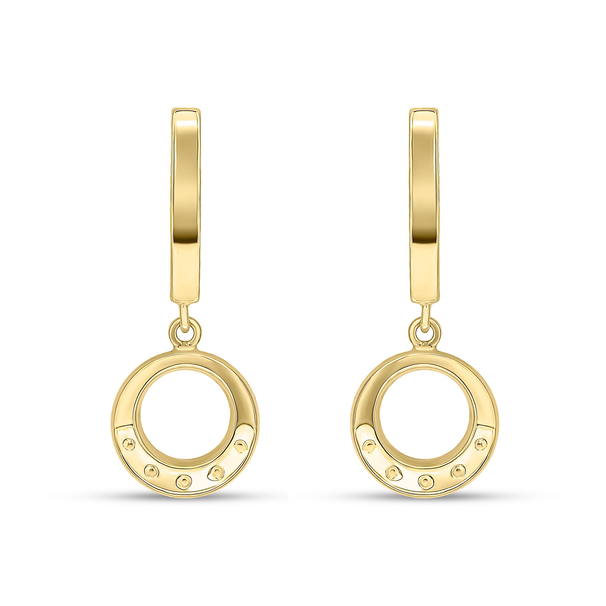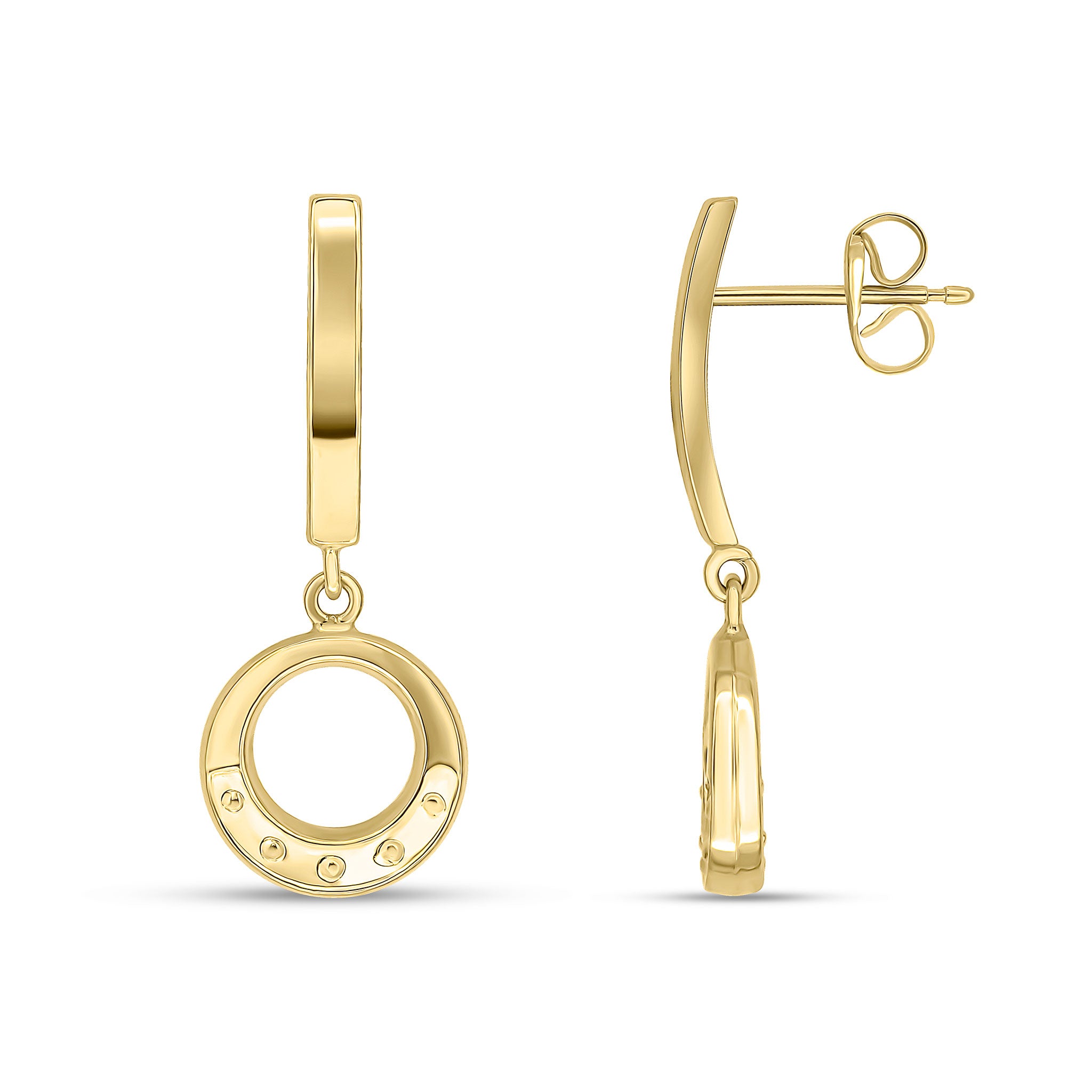 9CT Yellow Gold Polished Curved Bar and Open Circle Drop Earrings 22mm