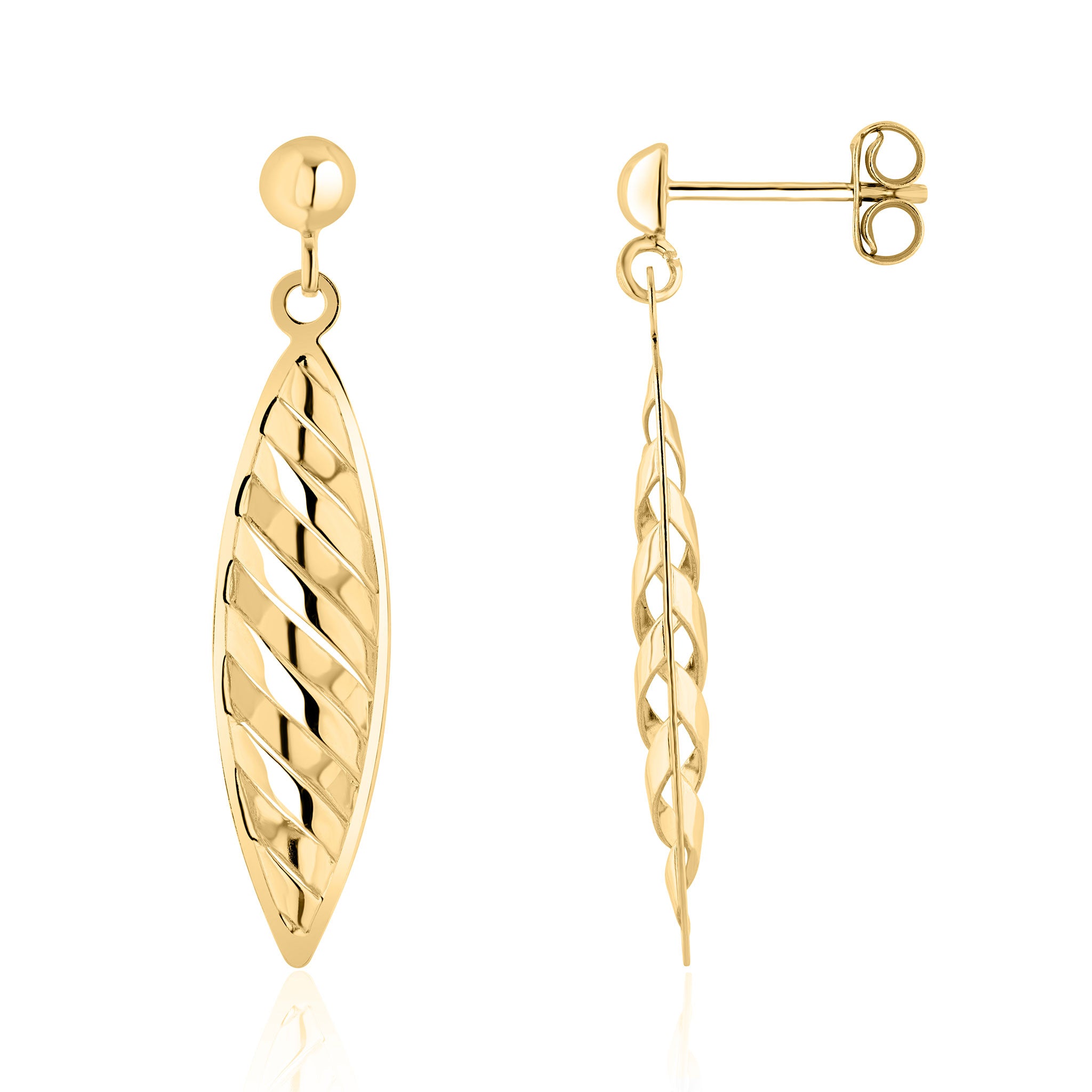 9CT Yellow Gold Striped Marquise Drop Earrings