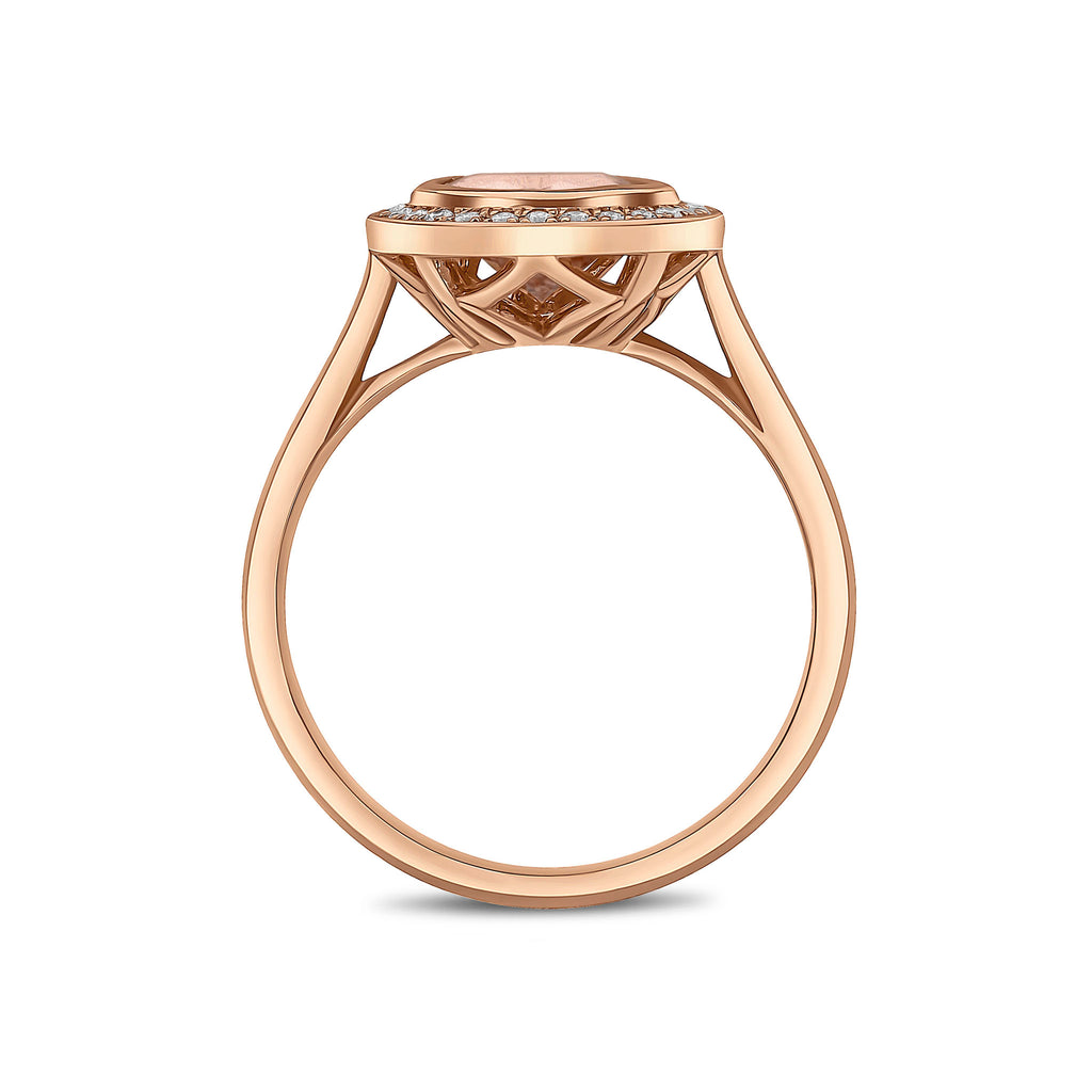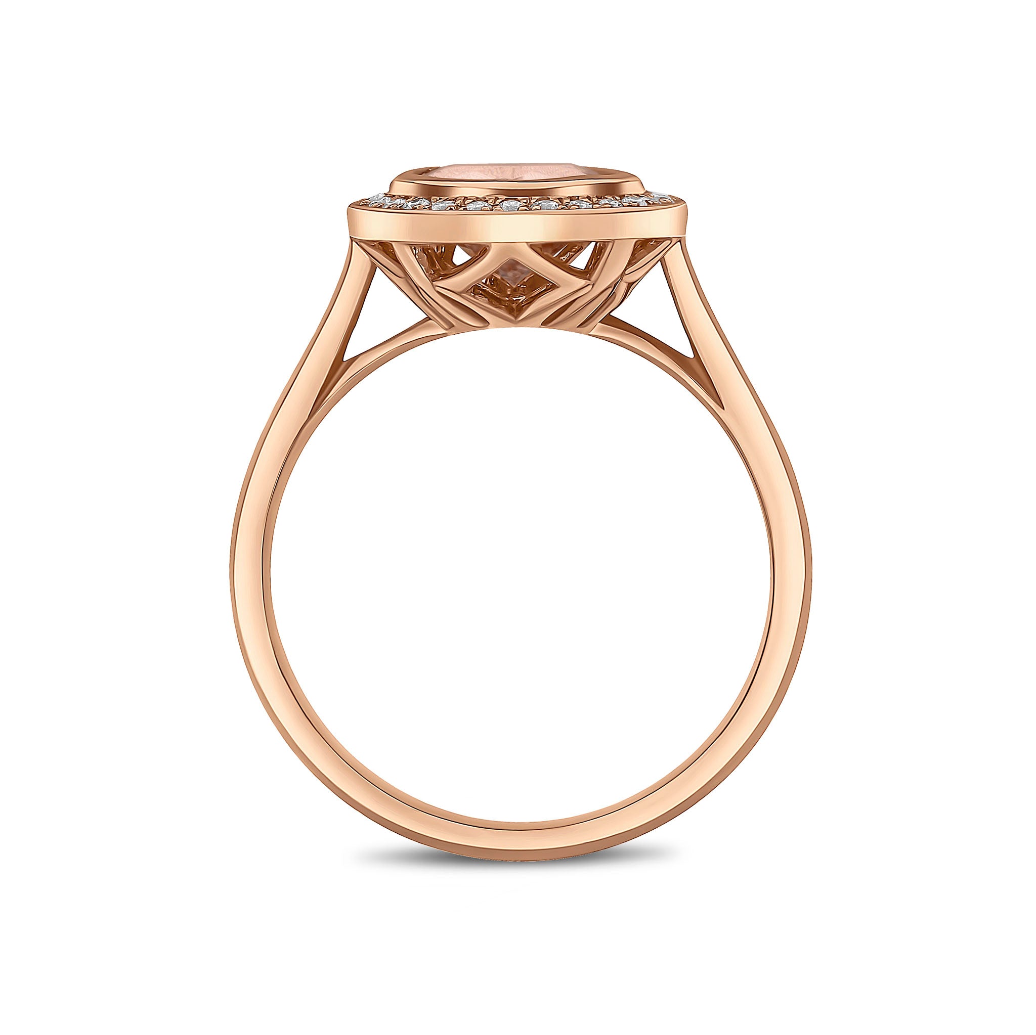 18CT Rose Gold Rubover Pear Shaped Morganite & Grain Set Diamond Cluster Ring 9x7mm