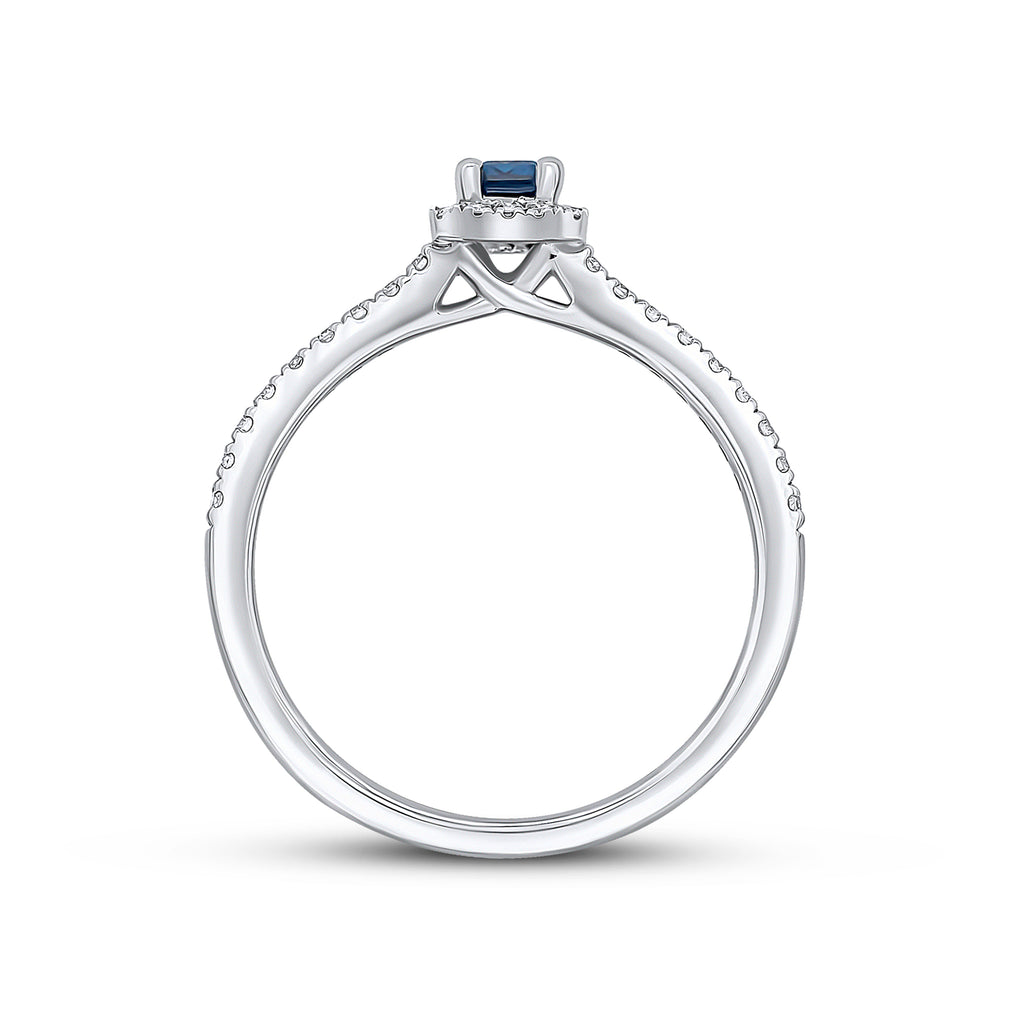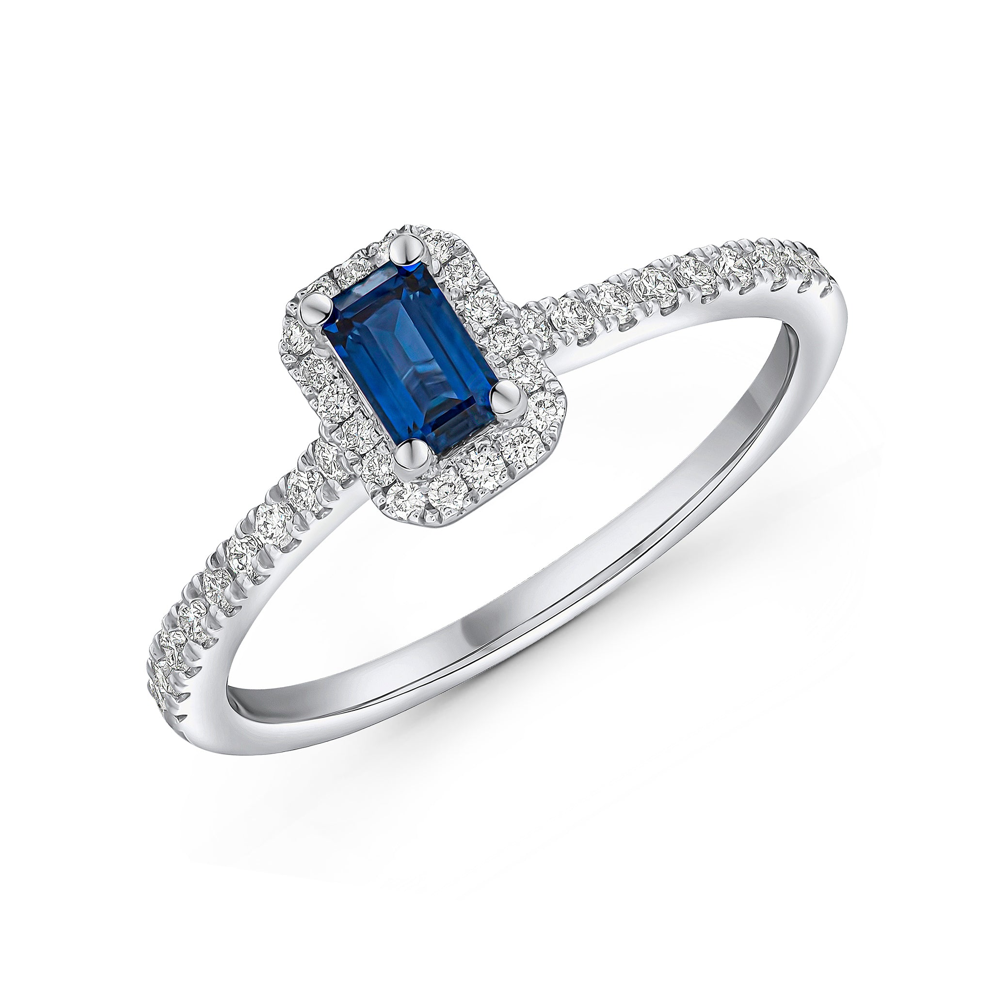 18CT White Gold Octagonal Sapphire & Diamond Cluster Ring with Diamond Band 5x3mm