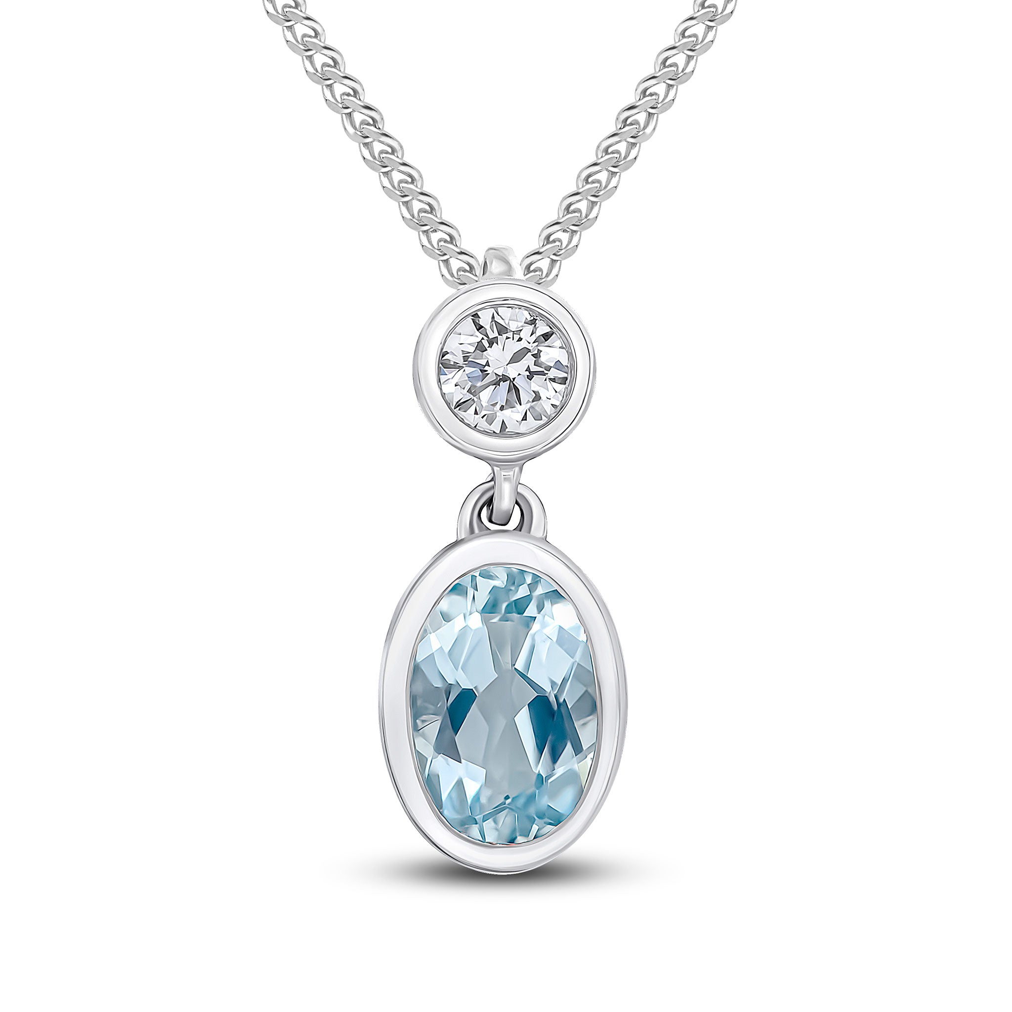 18CT White Gold Oval Aquamarine & Round Diamond Two Stone Pendant 6x4mm