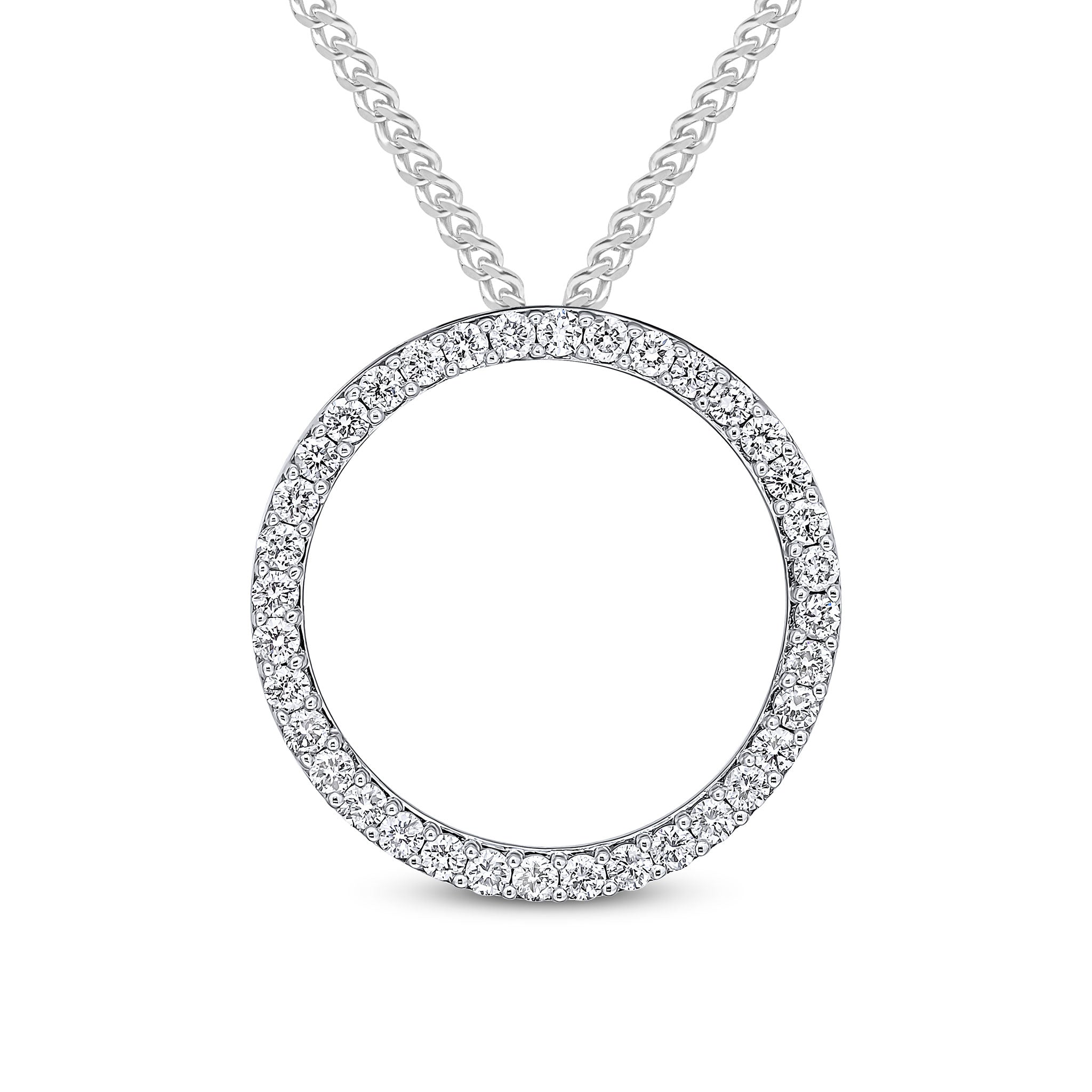 18CT White Gold Round Diamond Open Circle Slider Pendant 25mm