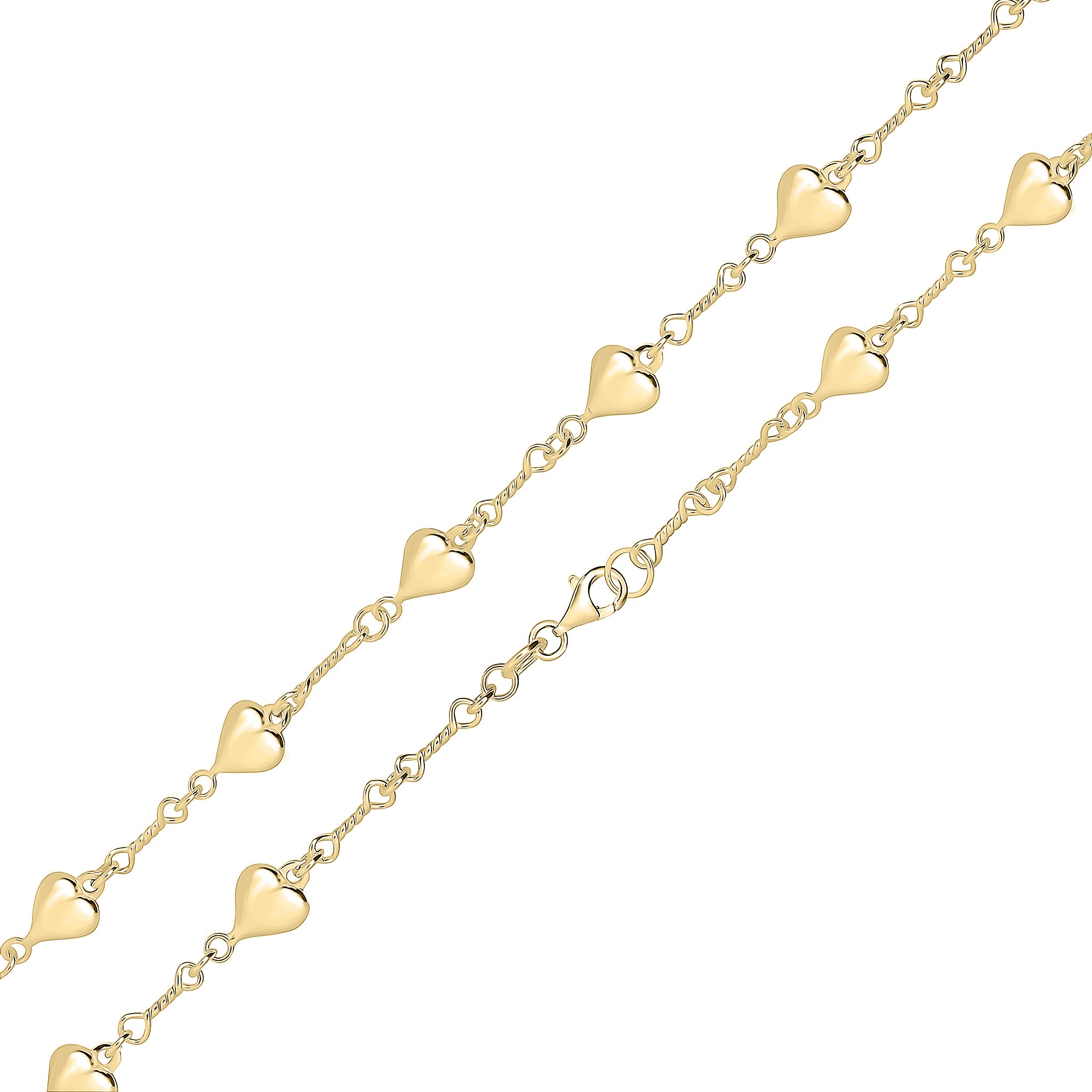 18ct Yellow Gold Vermeil 8.5mm Handmade Heart Twist Chain, 7.5"