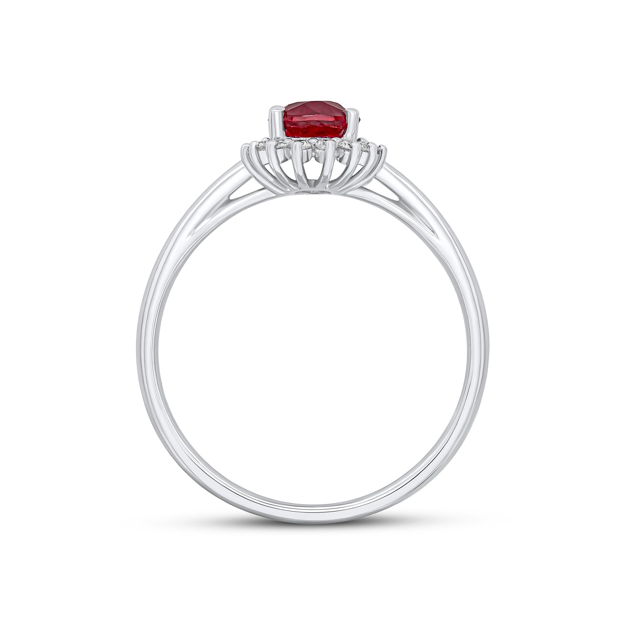 18CT White Gold Oval Ruby & Round Diamond Claw Set Cluster Ring 7x5mm