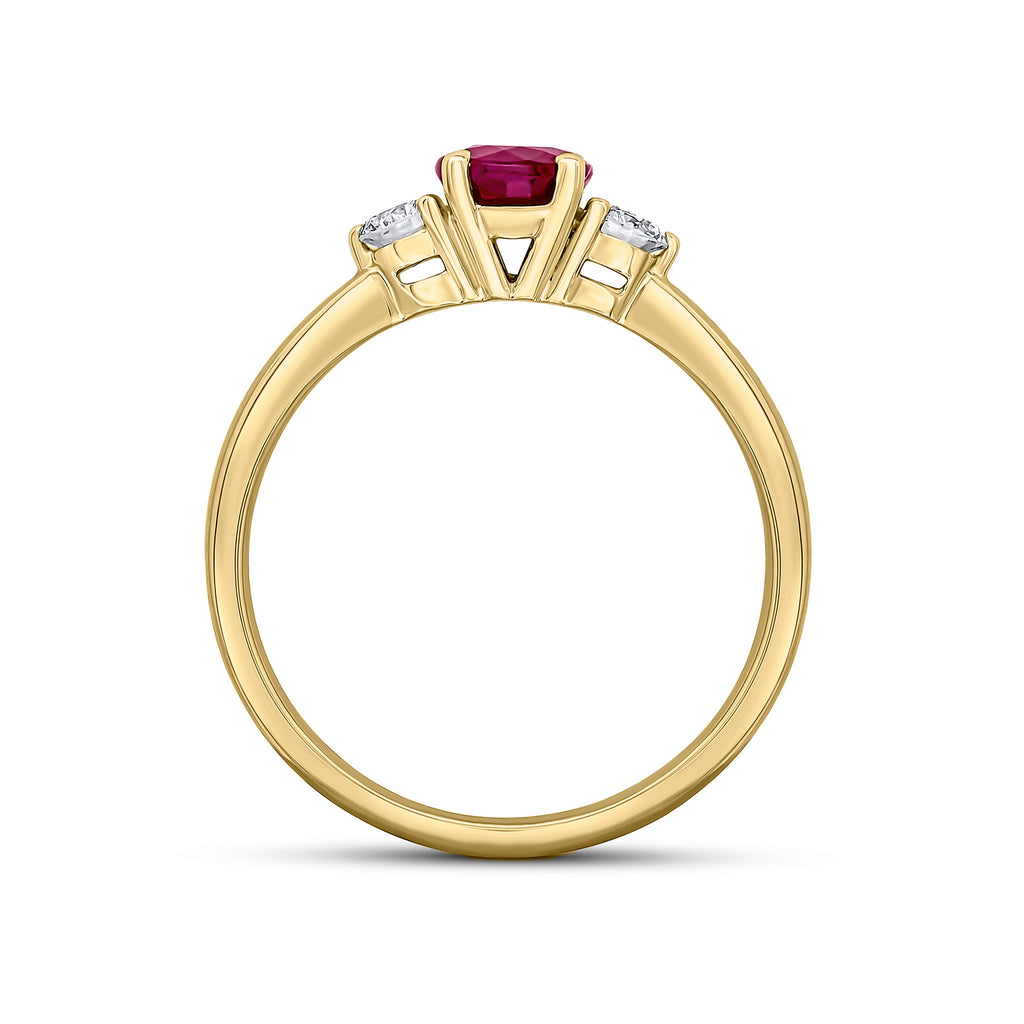 18CT Yellow Gold Round Ruby & Diamond Three Stone Ring 5mm