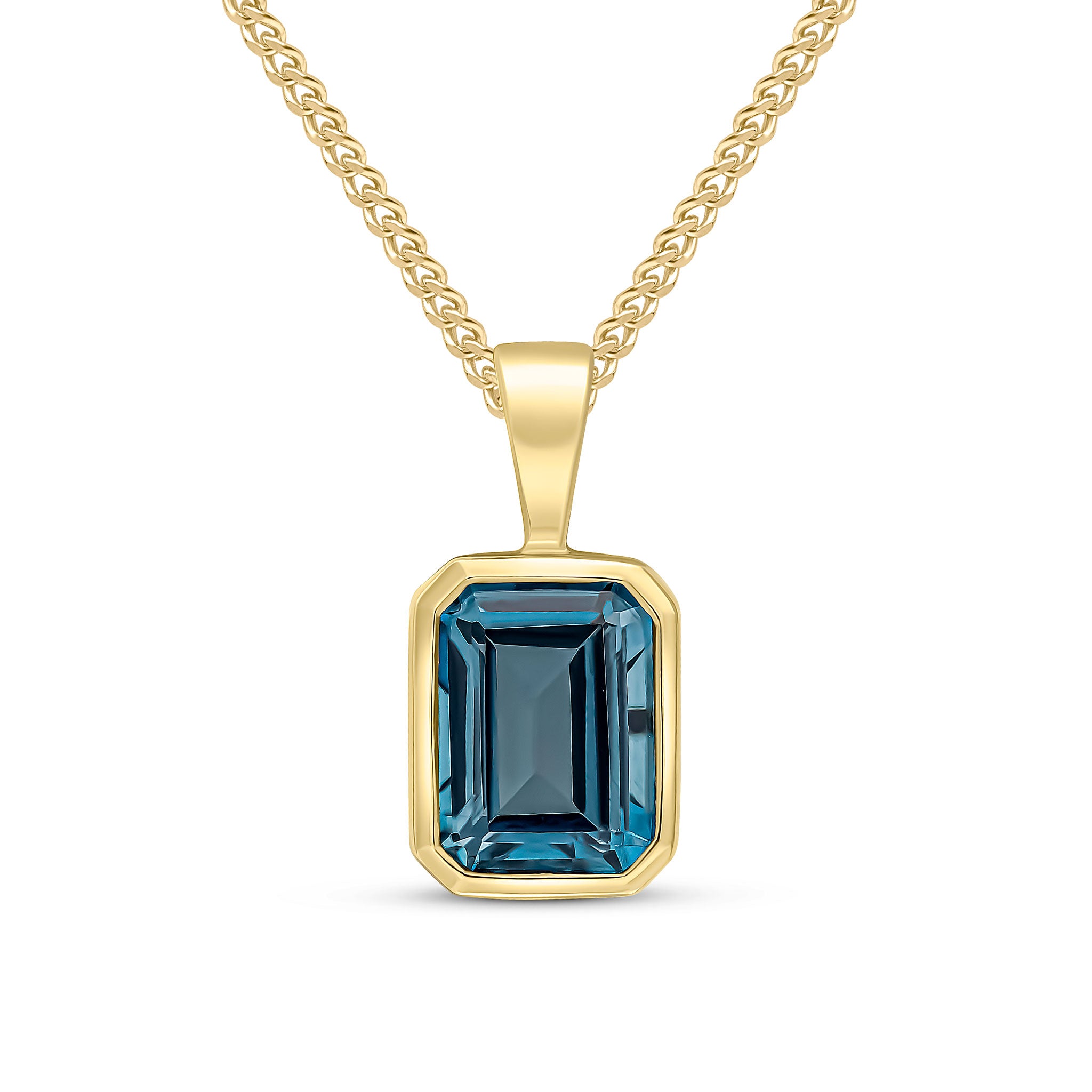 9CT Yellow Gold Octagonal London Blue Topaz Rubover Pendant 8x6mm