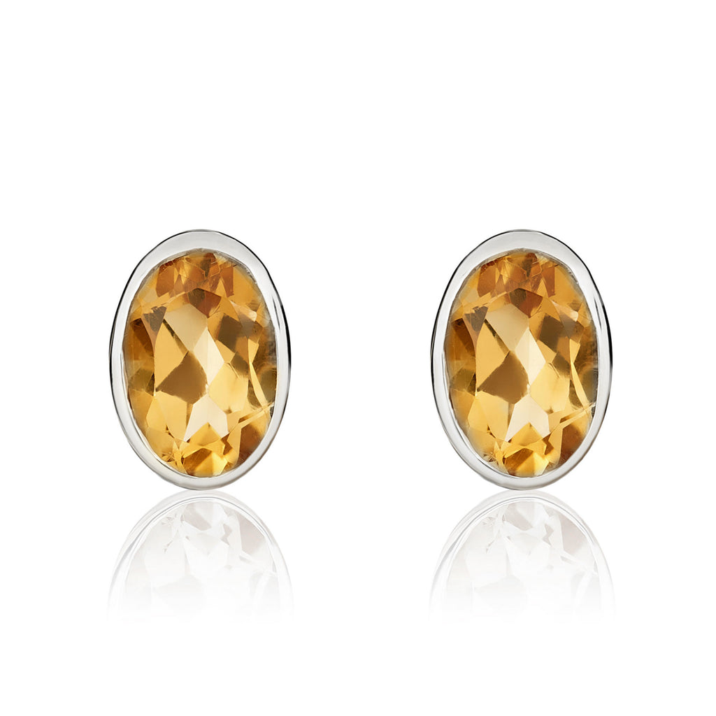 9CT White Gold Oval Citrine Rubover Stud Earrings 7x5mm