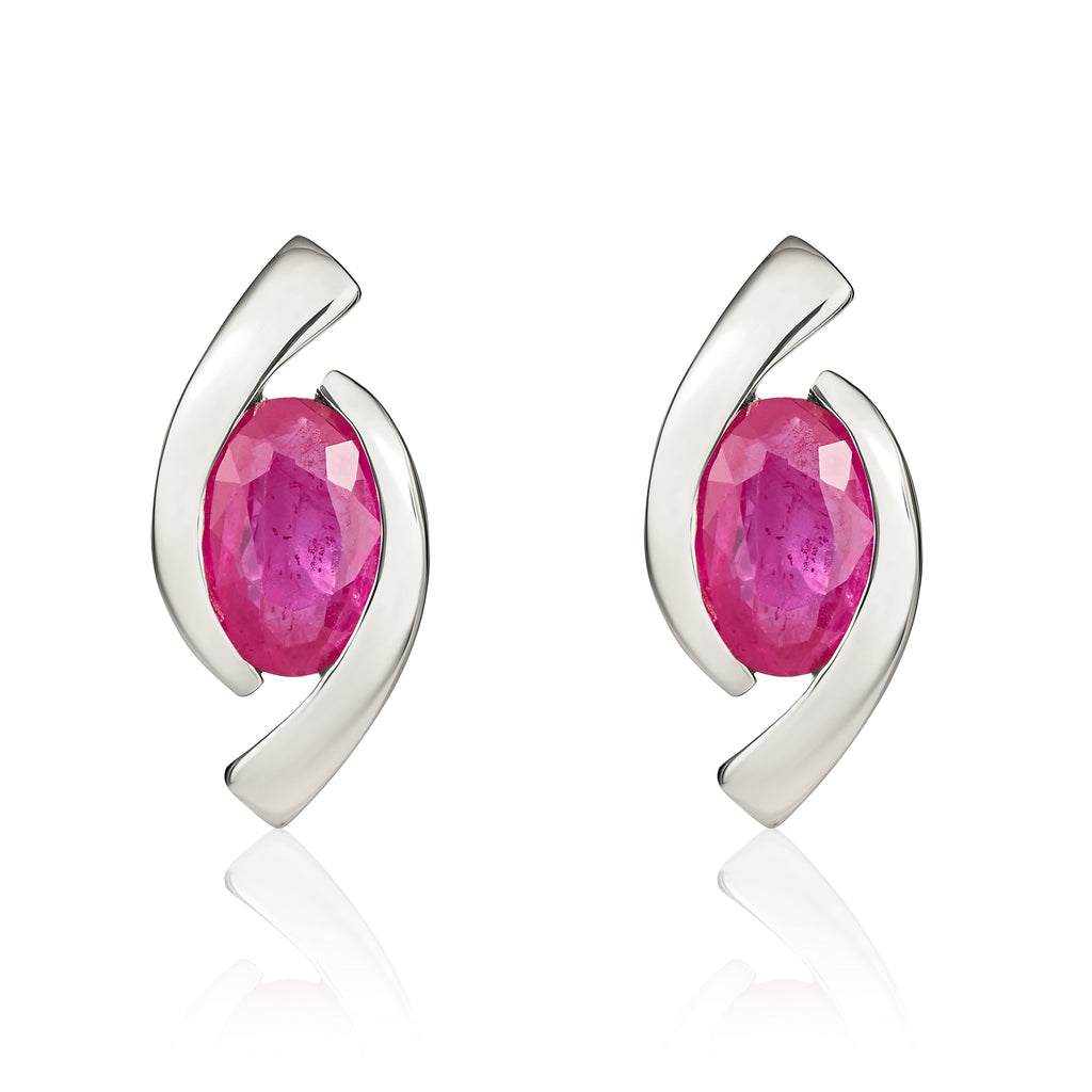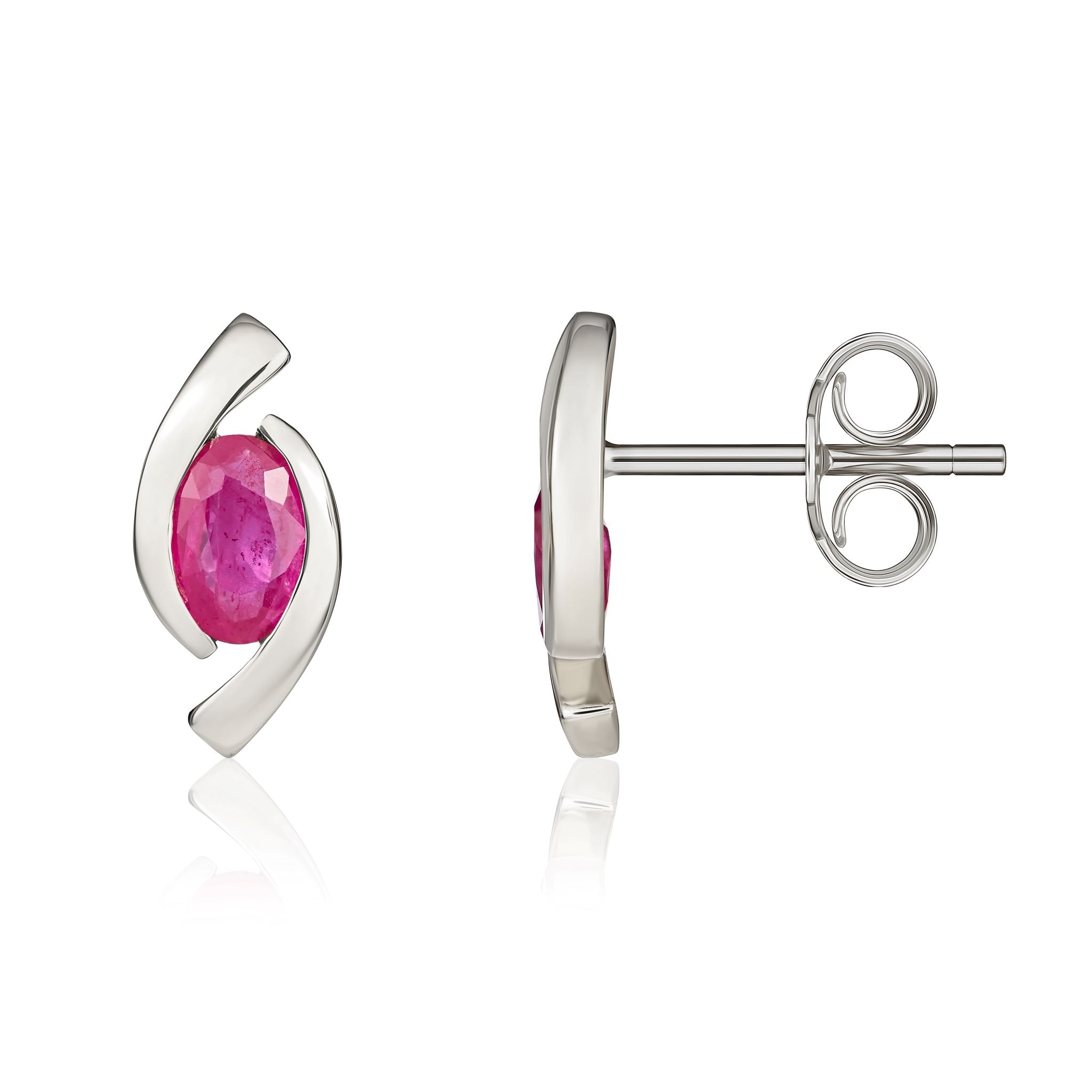 9CT White Gold Oval Ruby 'Eye' Stud Earrings 6x4mm