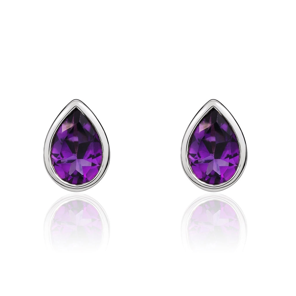 9CT White Gold Pear Shaped Amethyst Rubover Stud Earrings 6x4mm