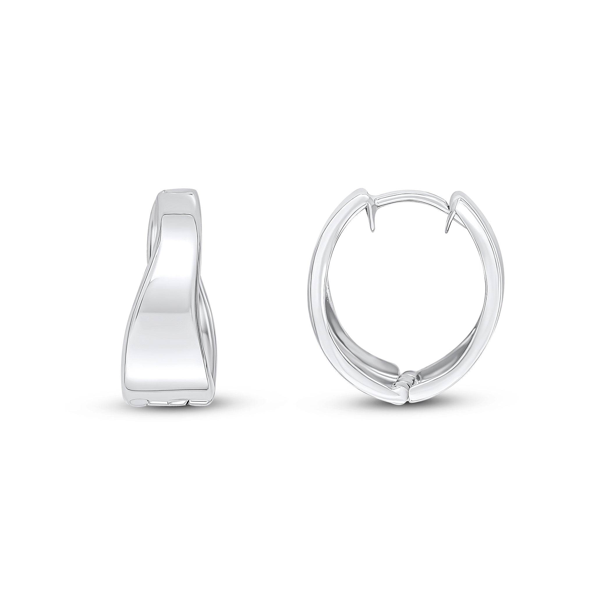 9CT White Gold Polished Wavy Tapered Hinged Huggy Hoop Earrings 15mm
