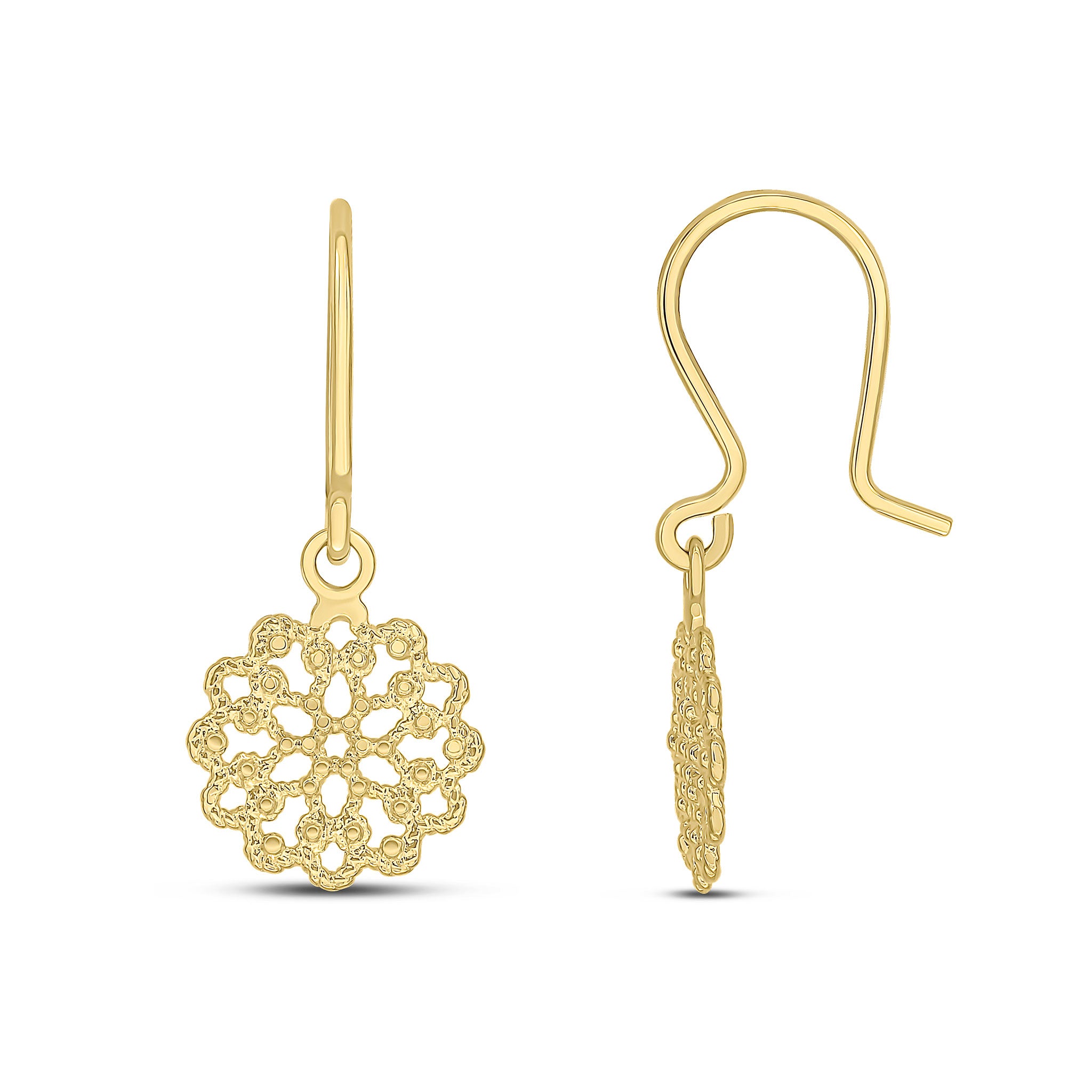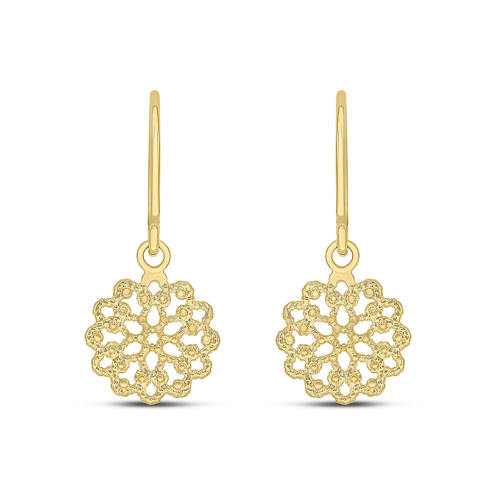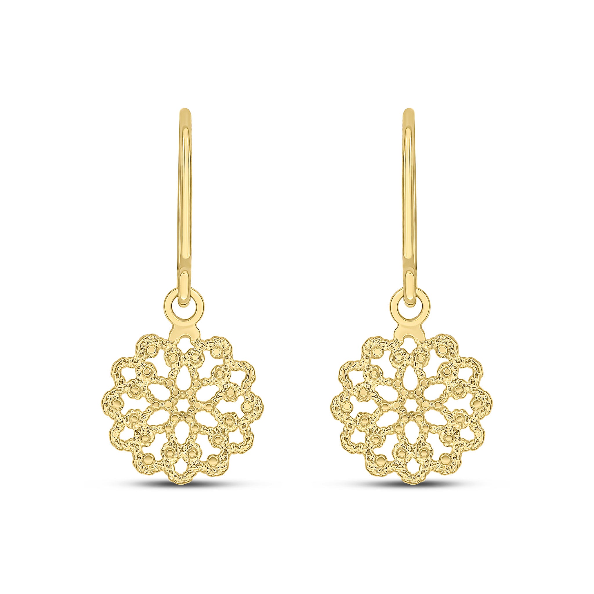 9CT Yellow Gold Round Flower Filigree Drop Earrings 25mm