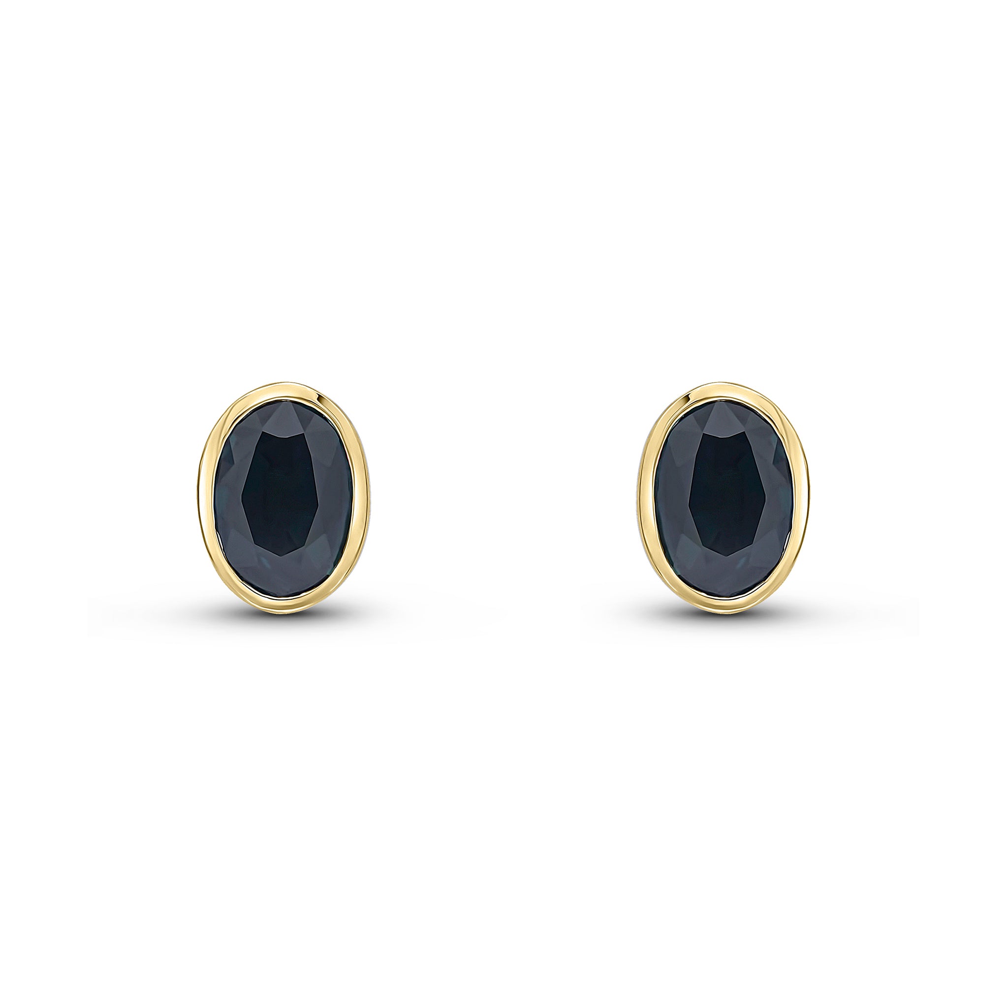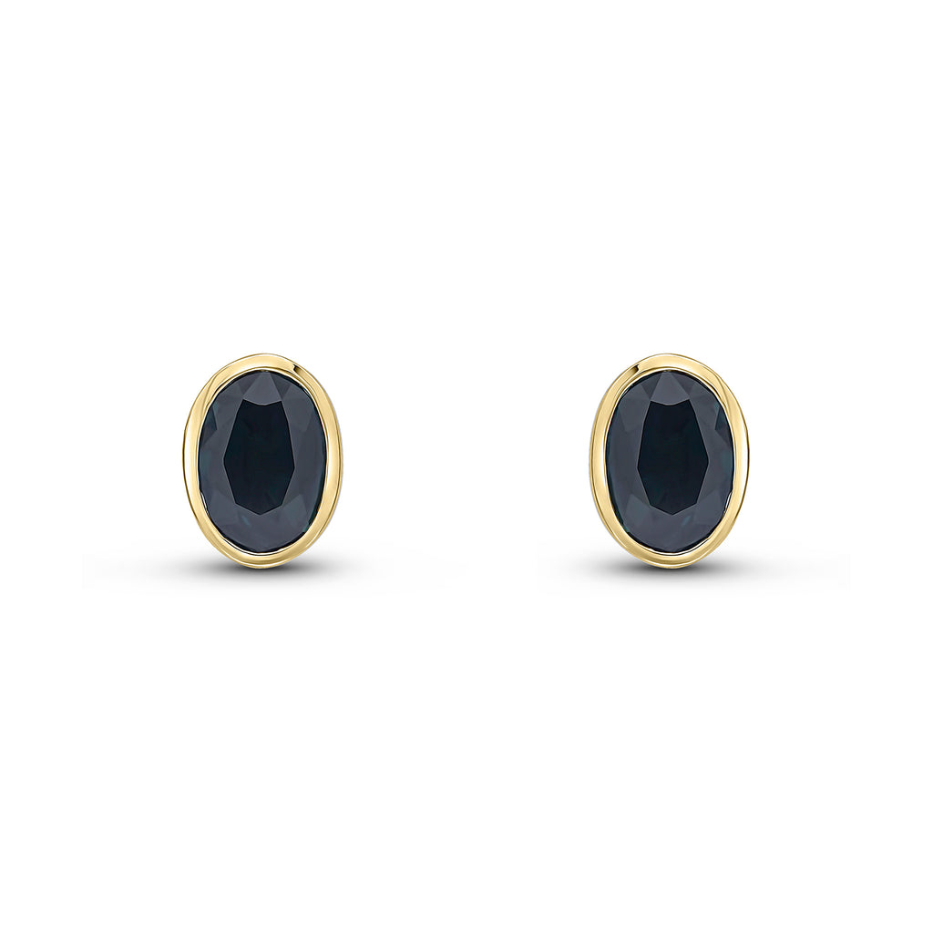 9CT Yellow Gold Oval Sapphire Rubover Stud Earrings 7x5mm