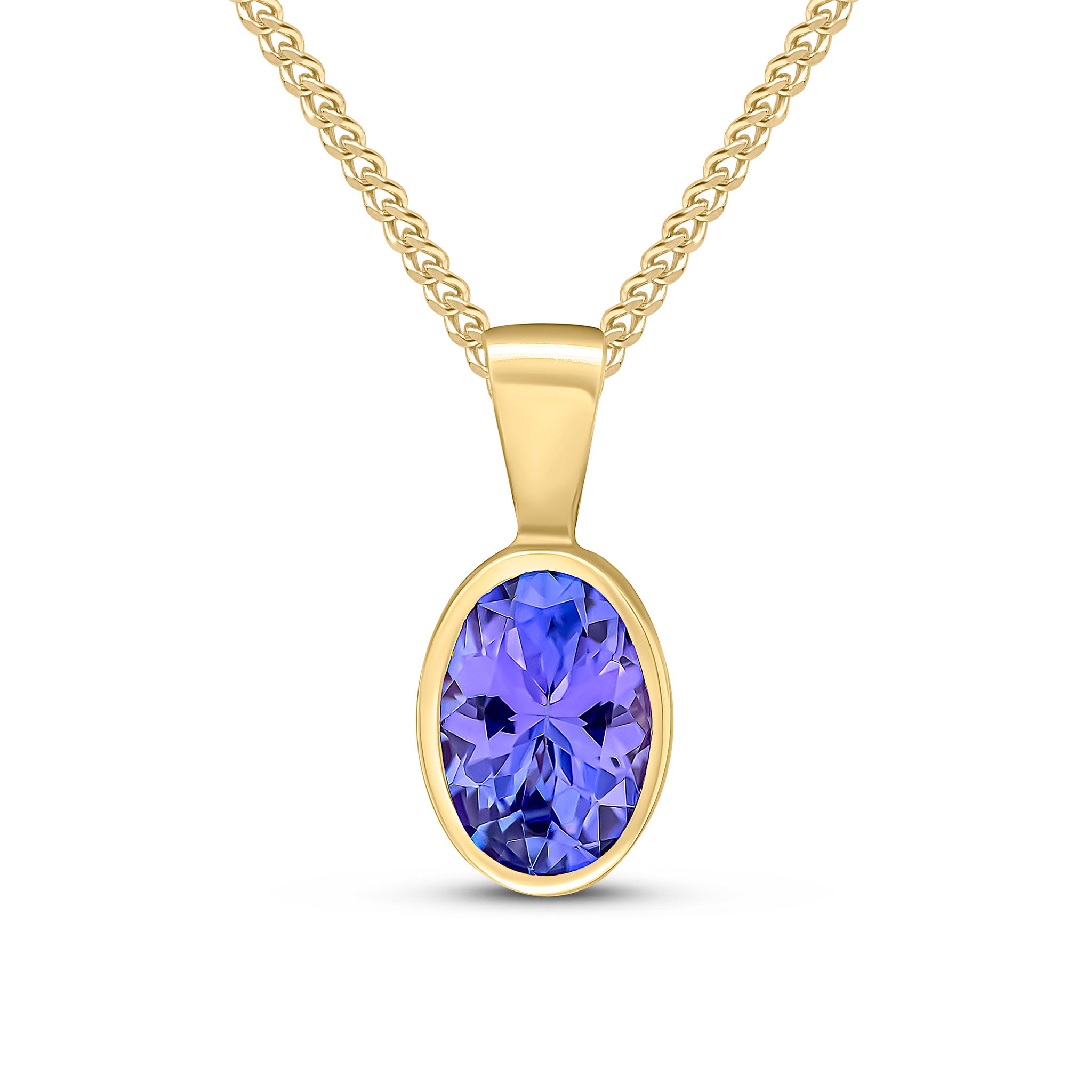 9CT Yellow Gold Oval Tanzanite Rubover Pendant 7x5mm
