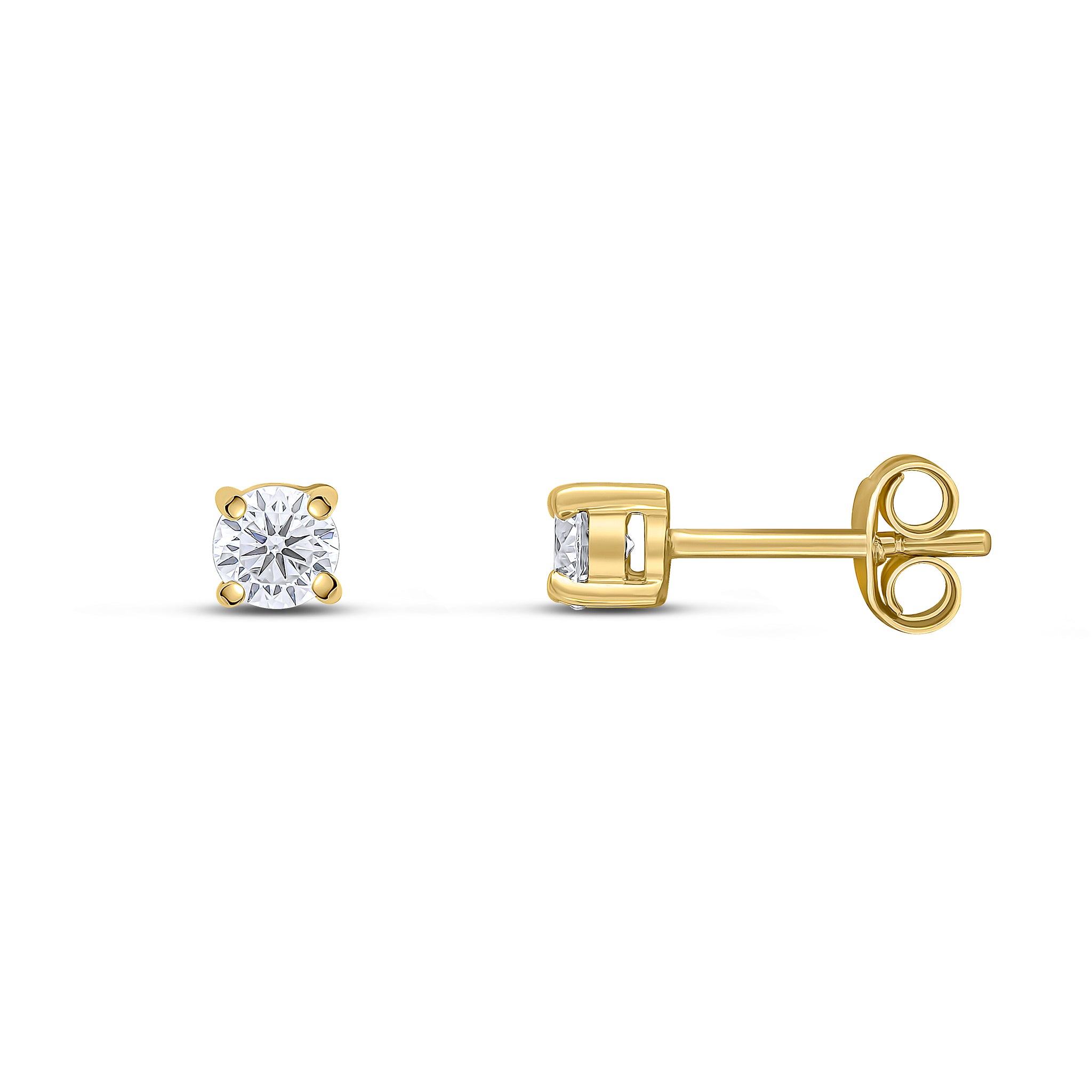 9CT Yellow Gold Round CZ Cubic Zirconia Claw Stud Earrings 4mm