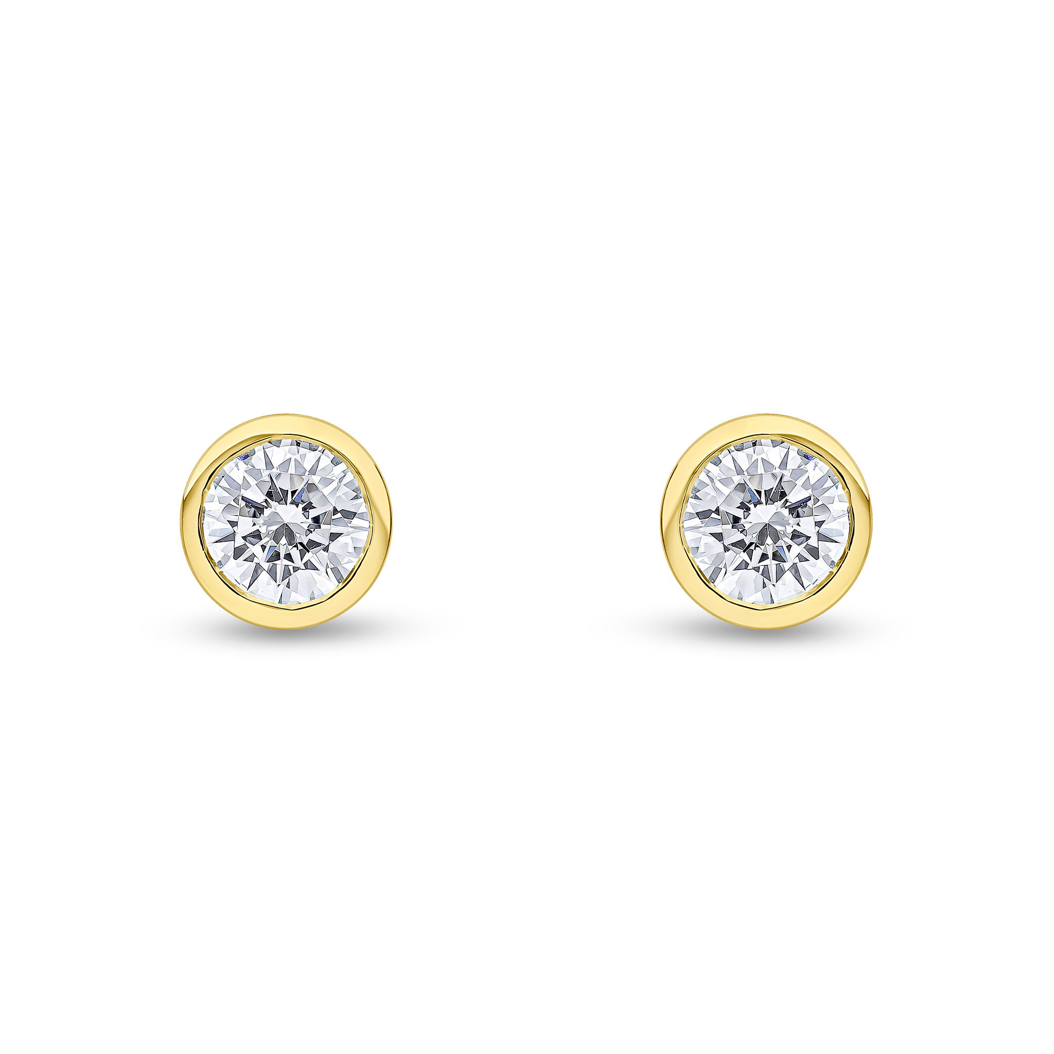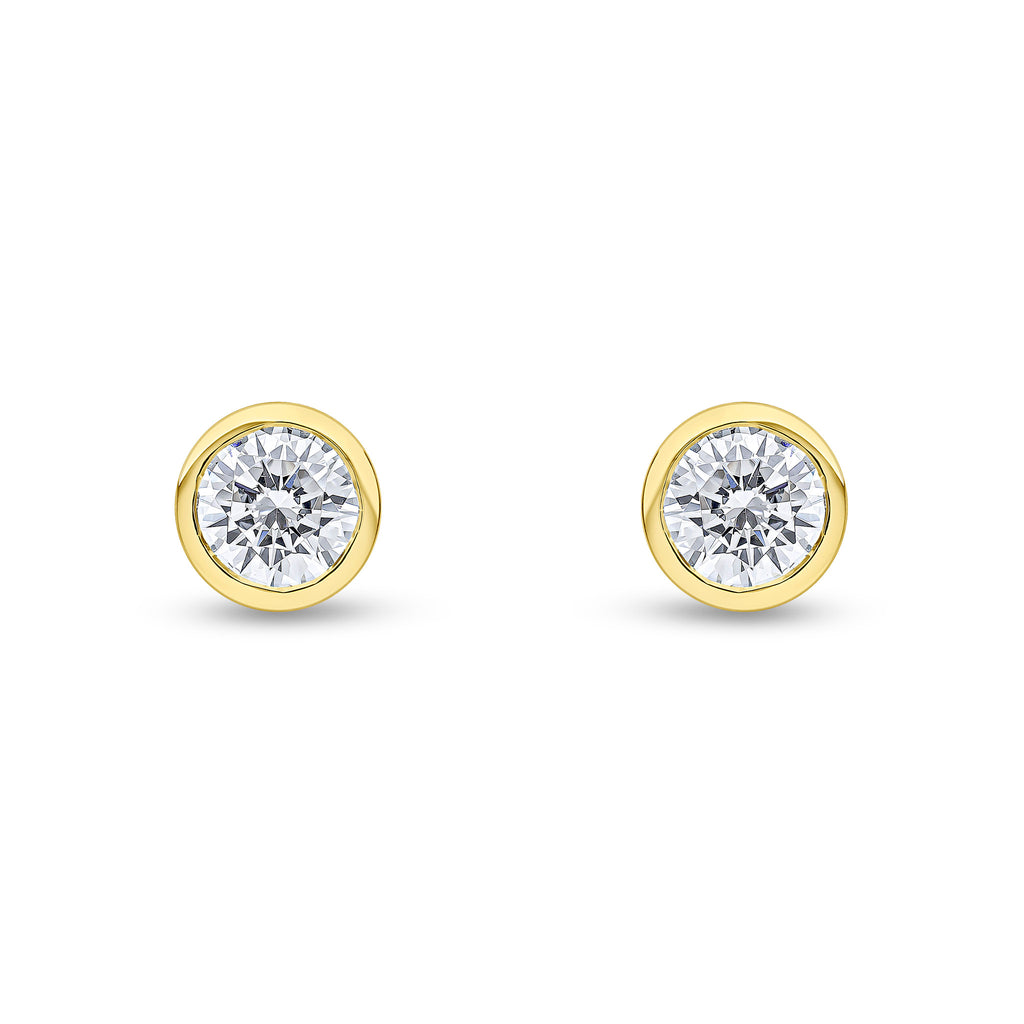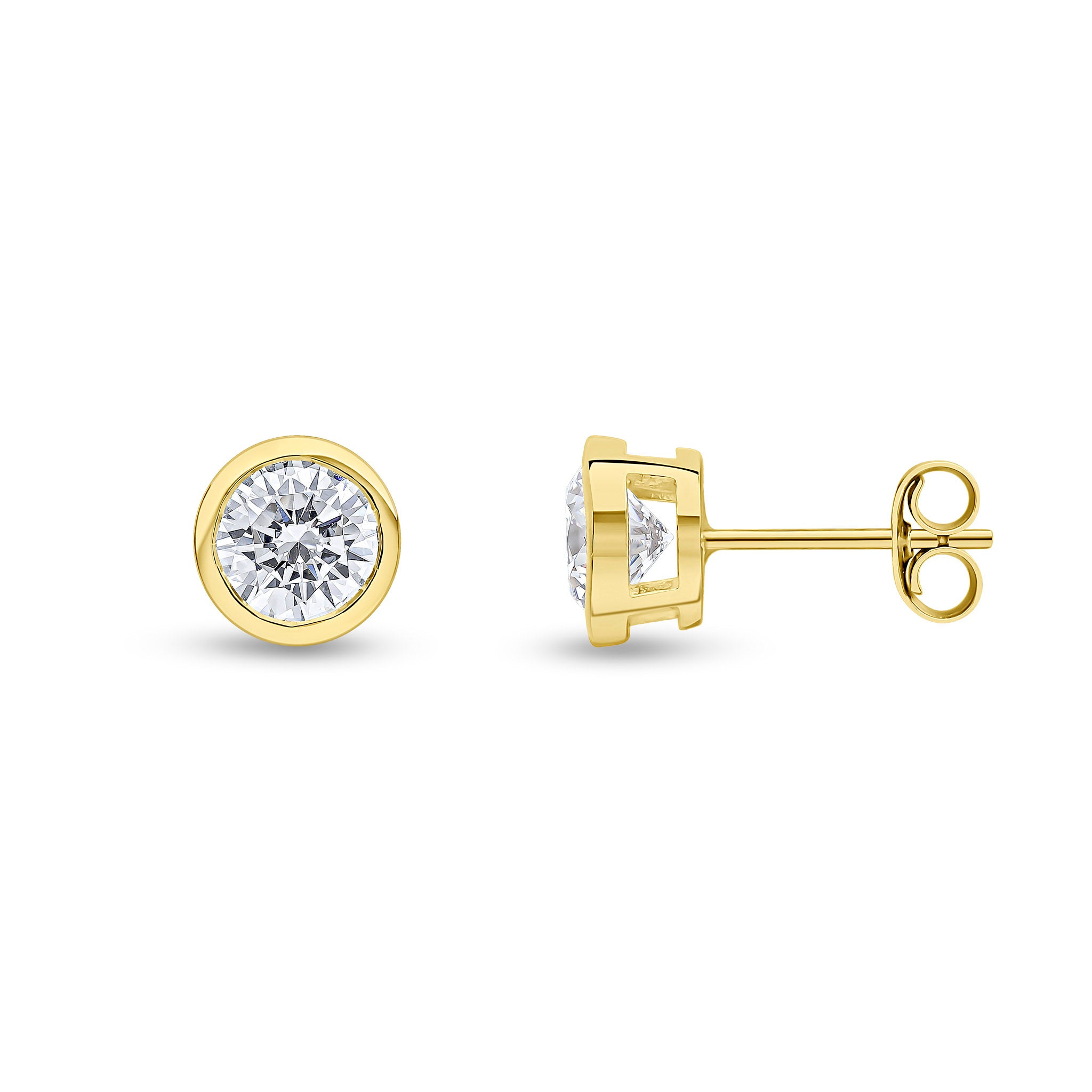 9CT Yellow Gold Round CZ Cubic Zirconia Rubover Stud Earrings 6mm