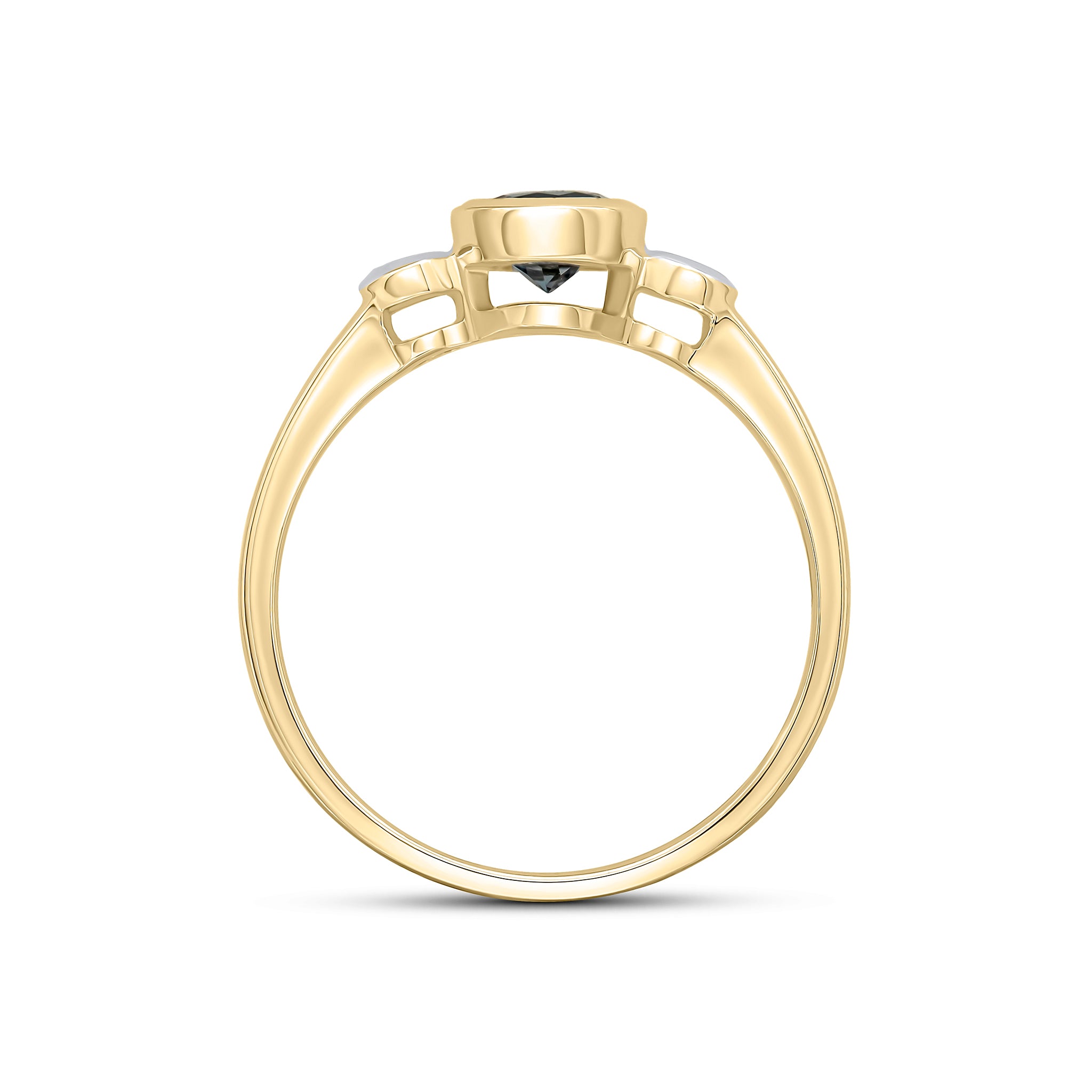 9CT Yellow Gold Round London Blue Topaz & Diamond Three Stone Ring 5mm