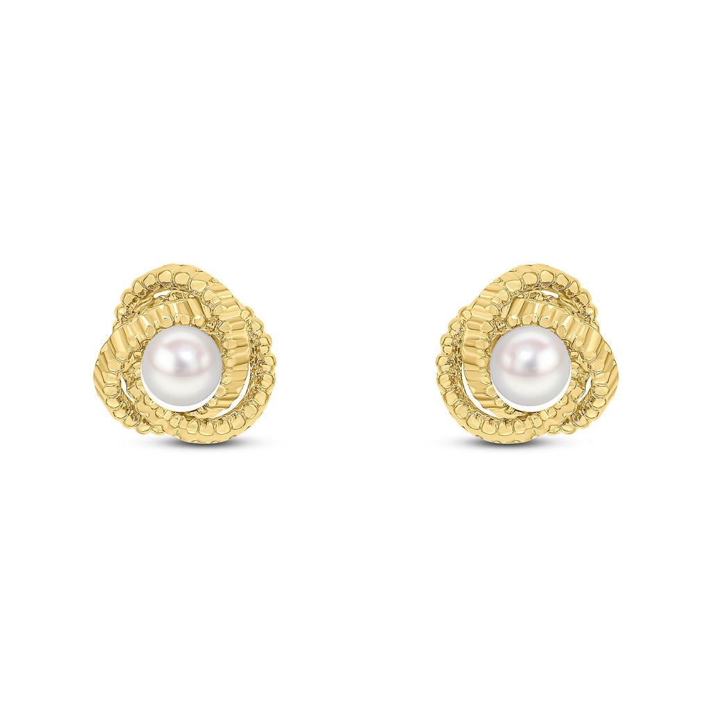 9CT Yellow Gold Textured Knot Stud Earrings with 5mm Pearl