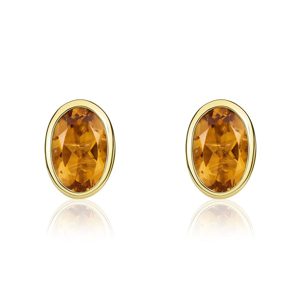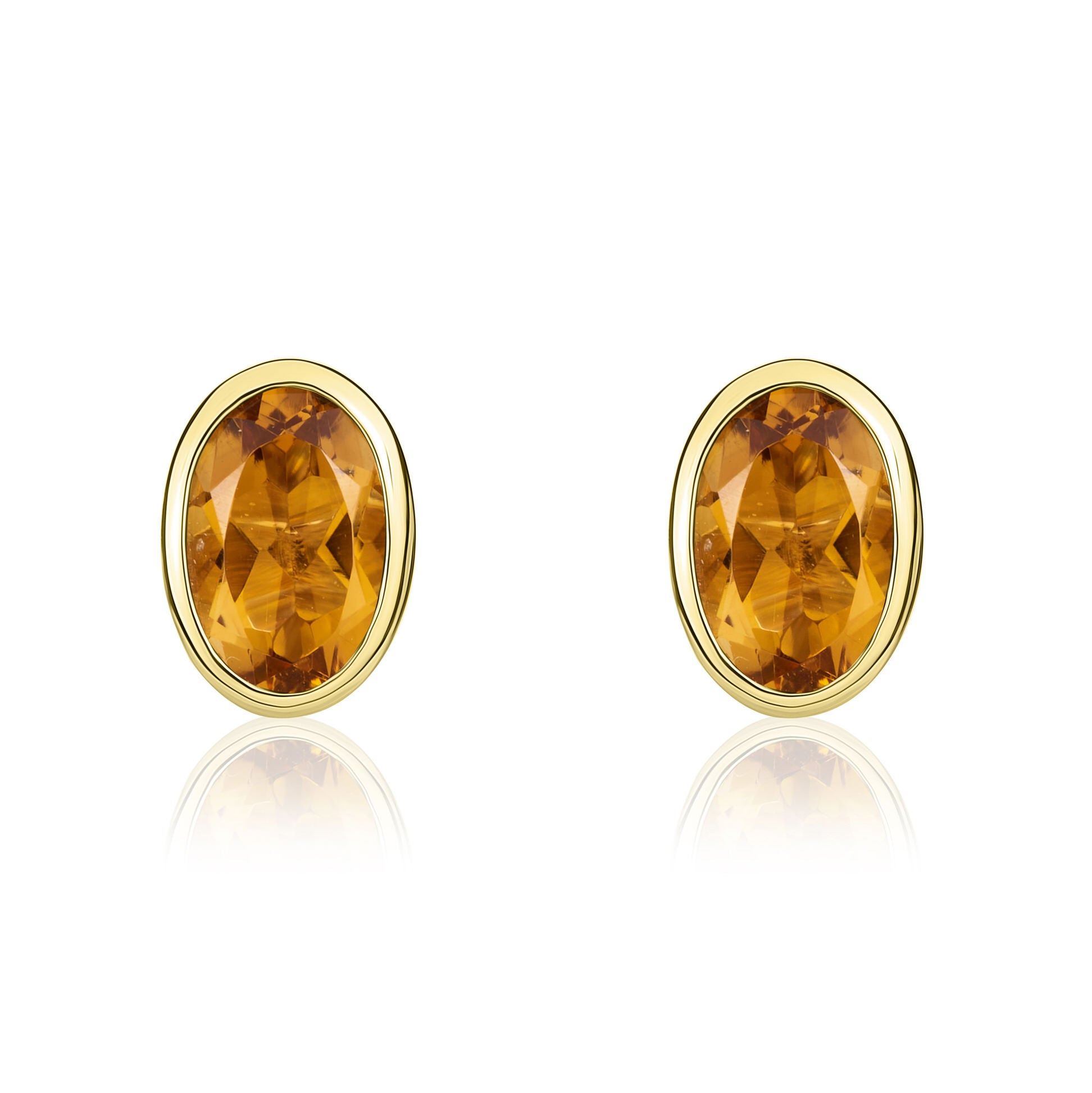 9CT Yellow Gold Oval Citrine Rubover Stud Earrings 6x4mm