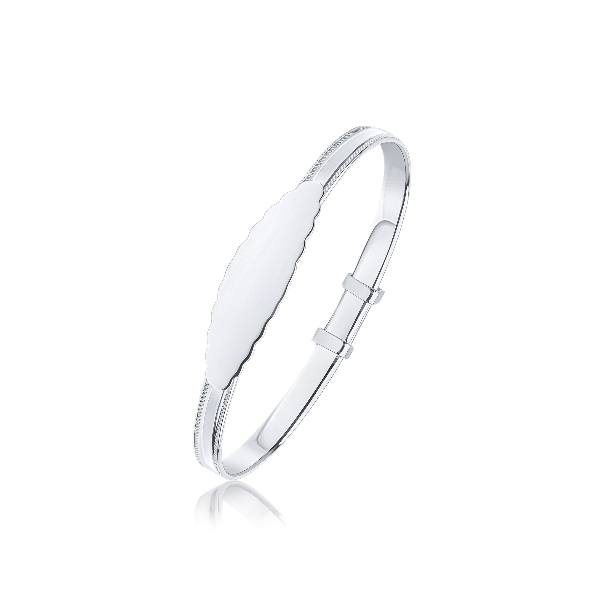 Silver 3.5mm Beaded Edge Baby Bangle with ID Engraving Plate