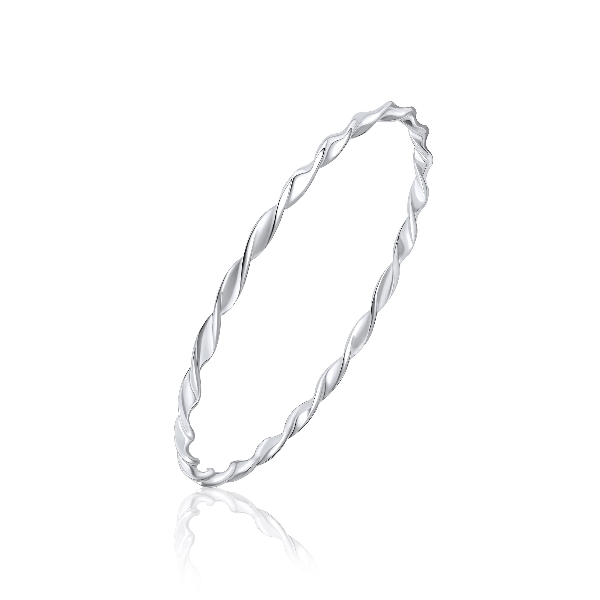 Silver 3mm Solid Round Loose Twisted Bangle 65mm