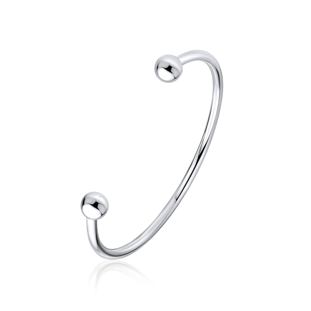 Silver 3mm Solid Round Torque Bangle with 8mm Beads 60mm
