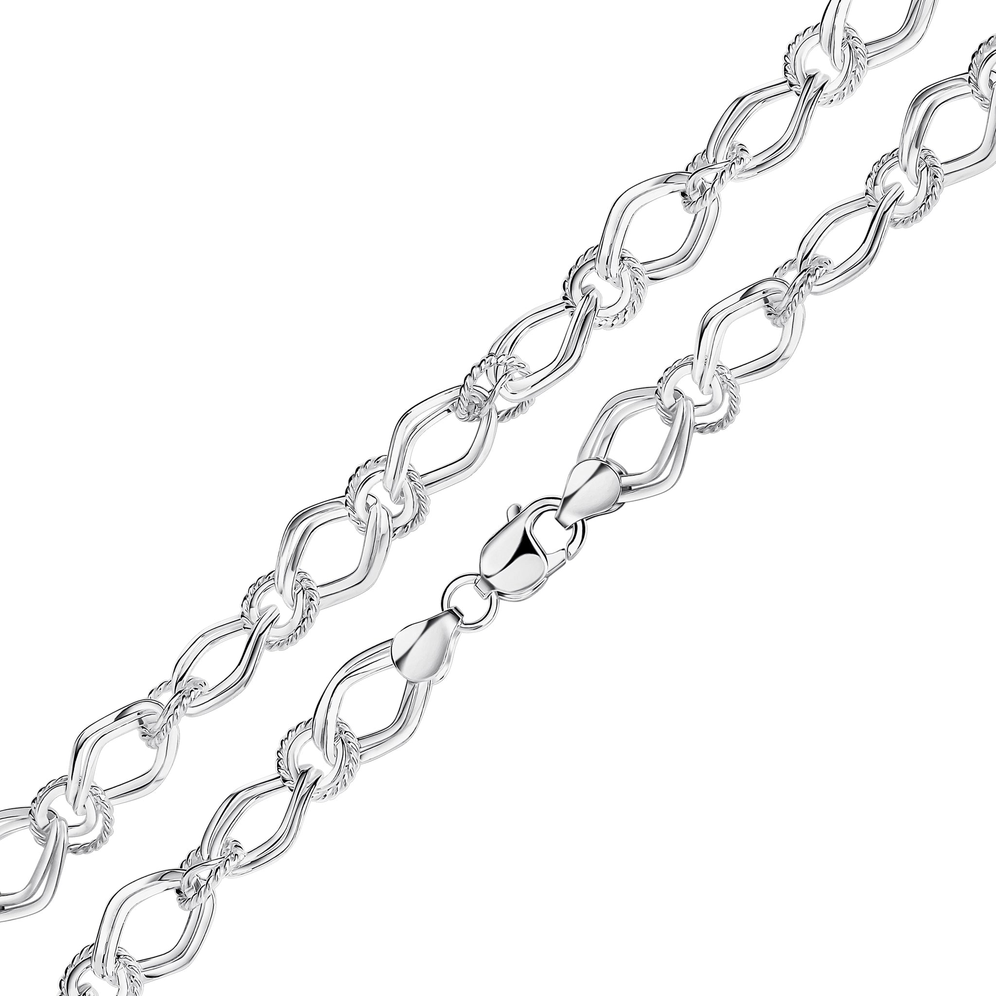 Silver Handmade Double Diamond and Textured Round Link Chain Bracelet 7.5"