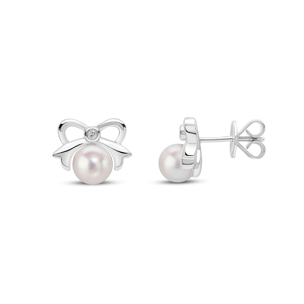 9CT White Gold Pearl & Diamond Bow Stud Earrings