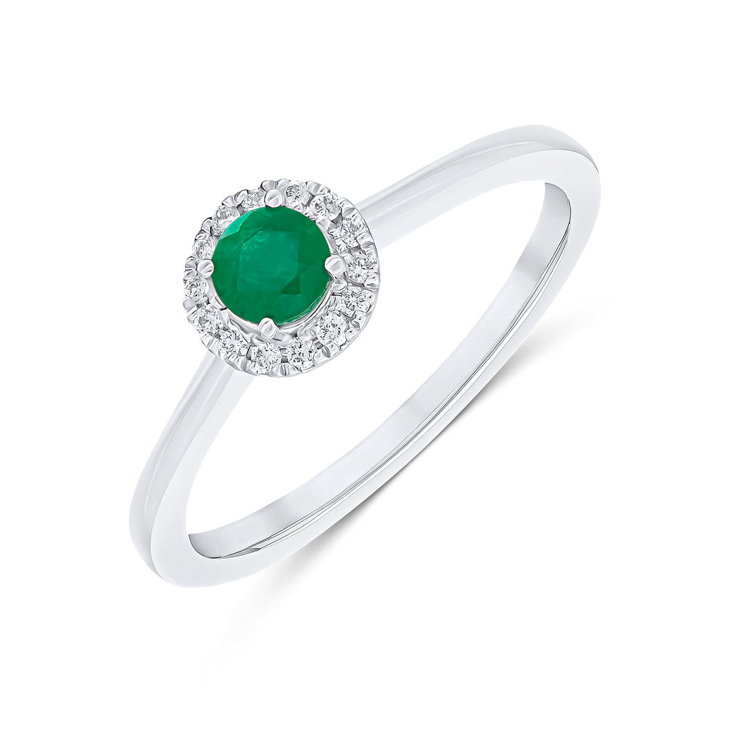 18CT White Gold Round Emerald & Diamond Cluster Claw Set Ring 4mm