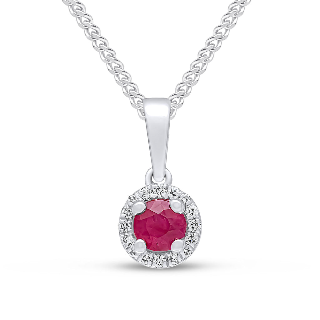 18CT White Gold Round Ruby & Diamond Cluster Pendant 4mm