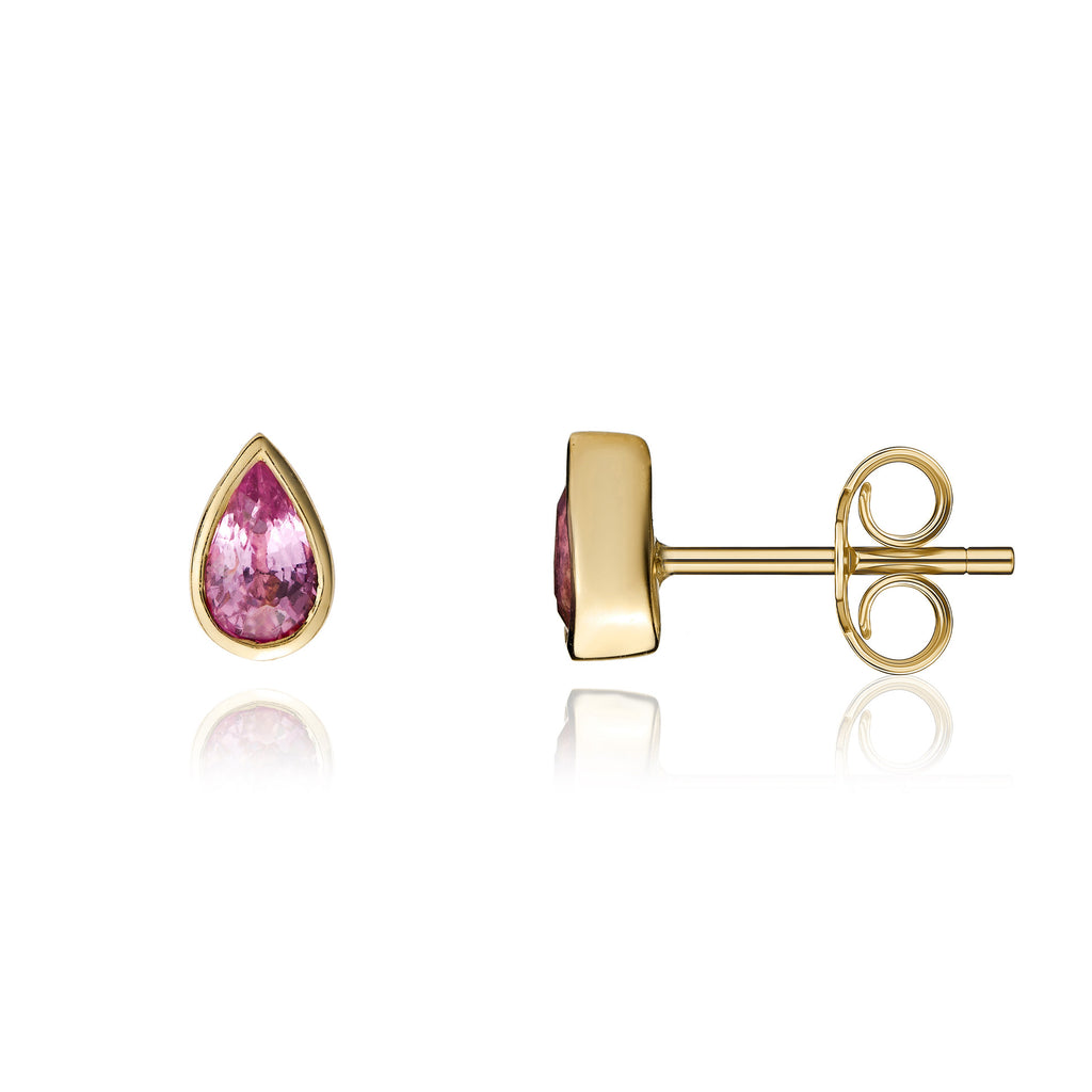 9CT Yellow Gold Pear Shaped Pink Sapphire Rubover Stud Earrings 5x3mm