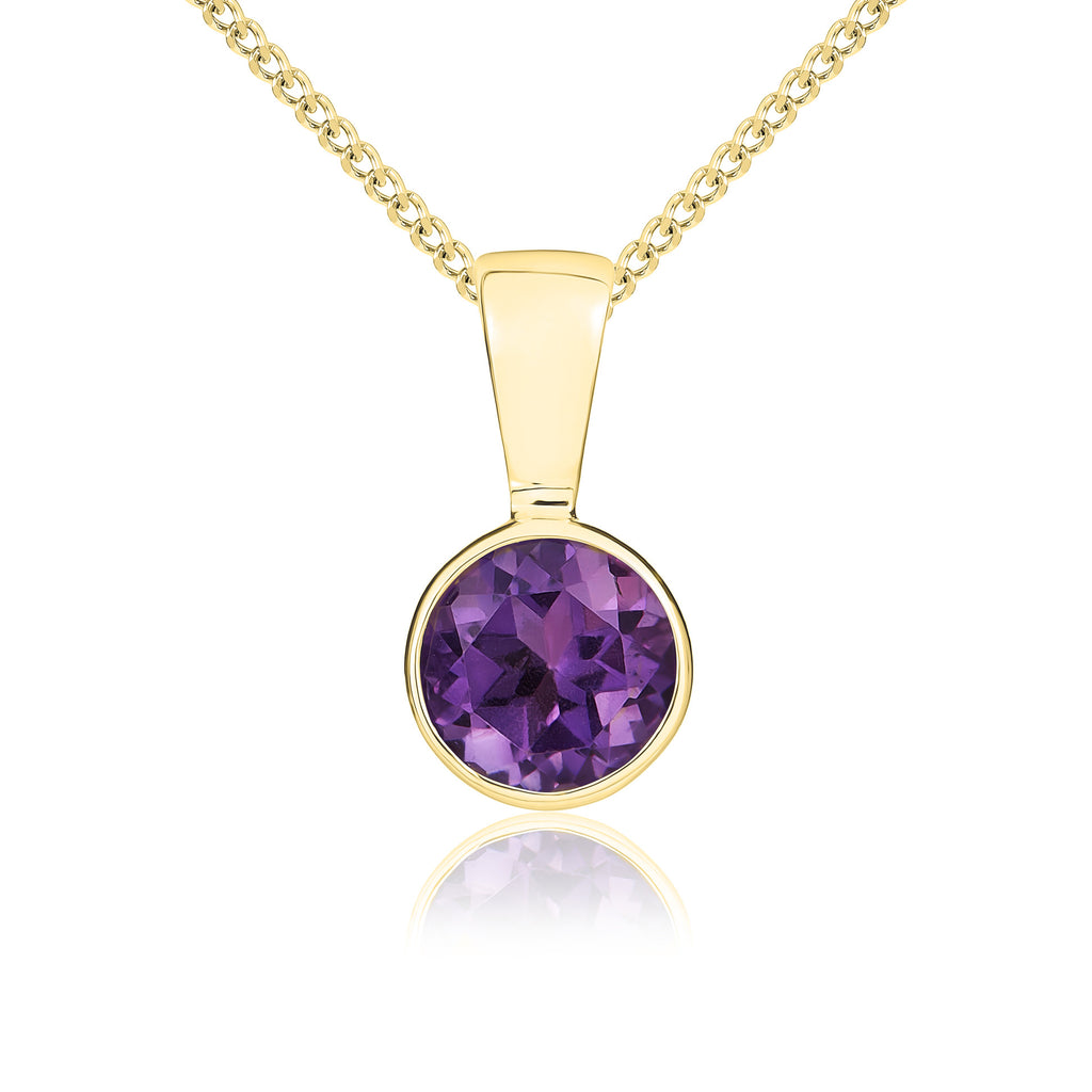 9CT Yellow Gold Round Amethyst Rubover Pendant 5mm