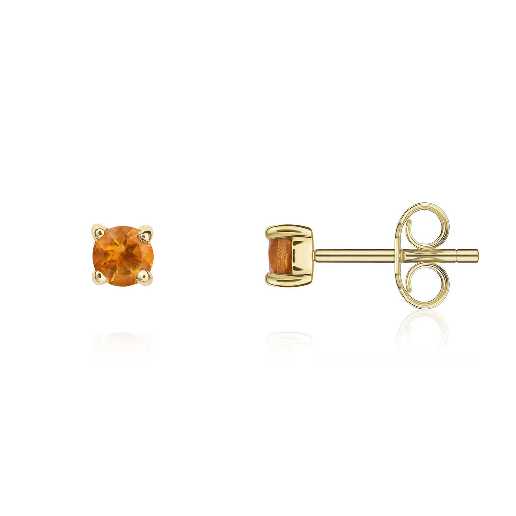 9CT Yellow Gold Round Citrine Claw Stud Earrings 3mm