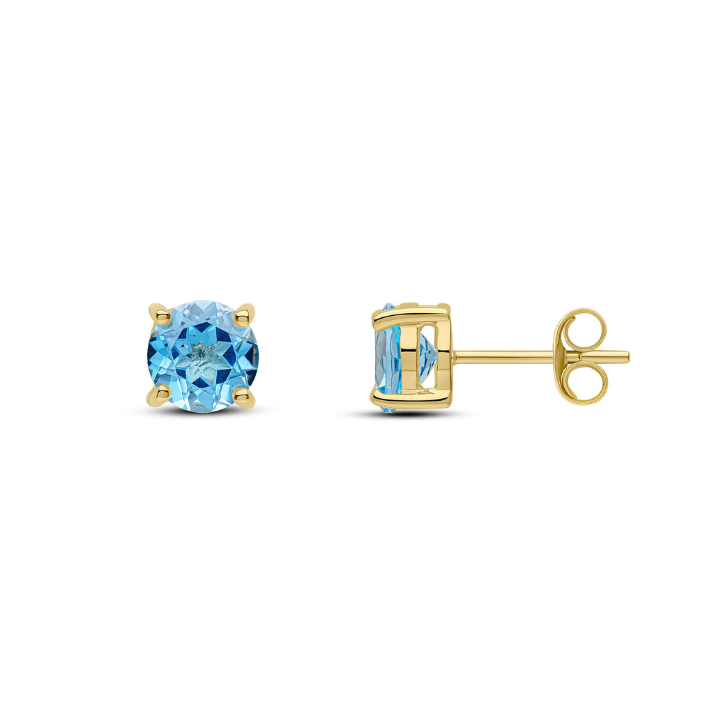 9CT Yellow Gold Round Swiss Blue Topaz Claw Stud Earrings 6mm