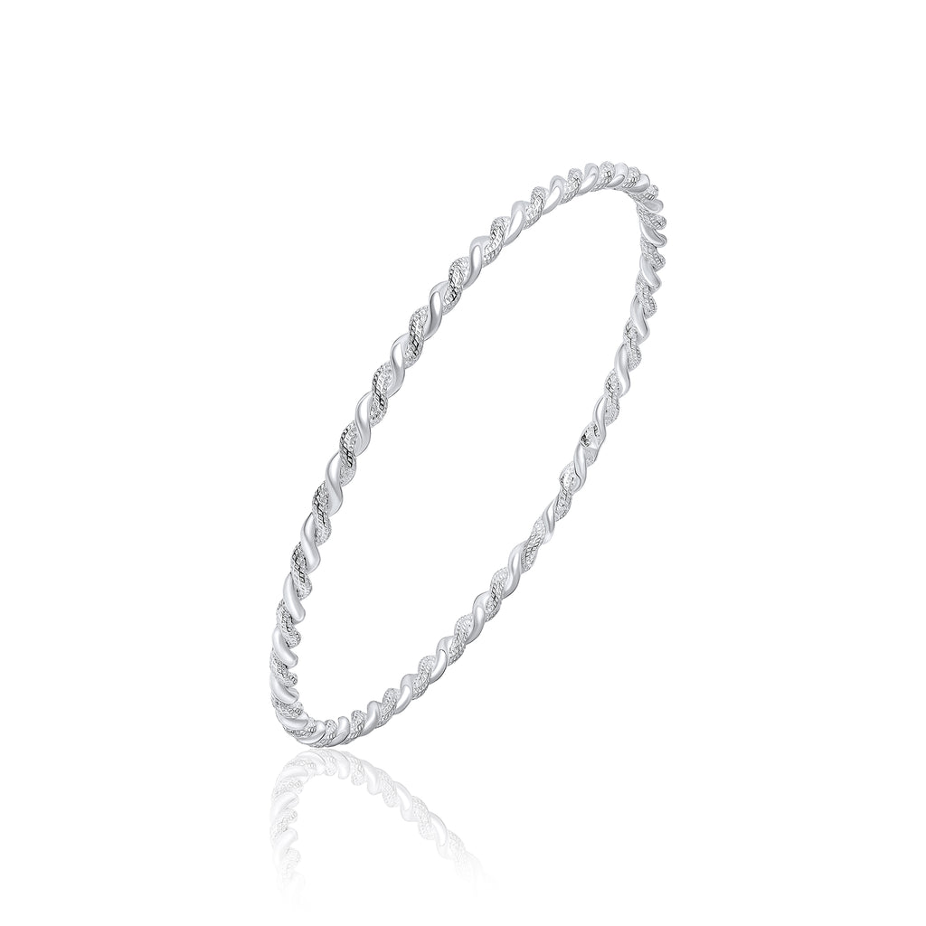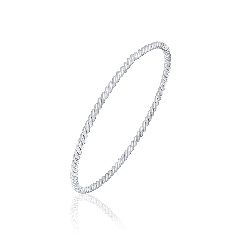 Silver 3mm Solid Round Twisted Bangle With Twisted Rope Intertwined 65mm
