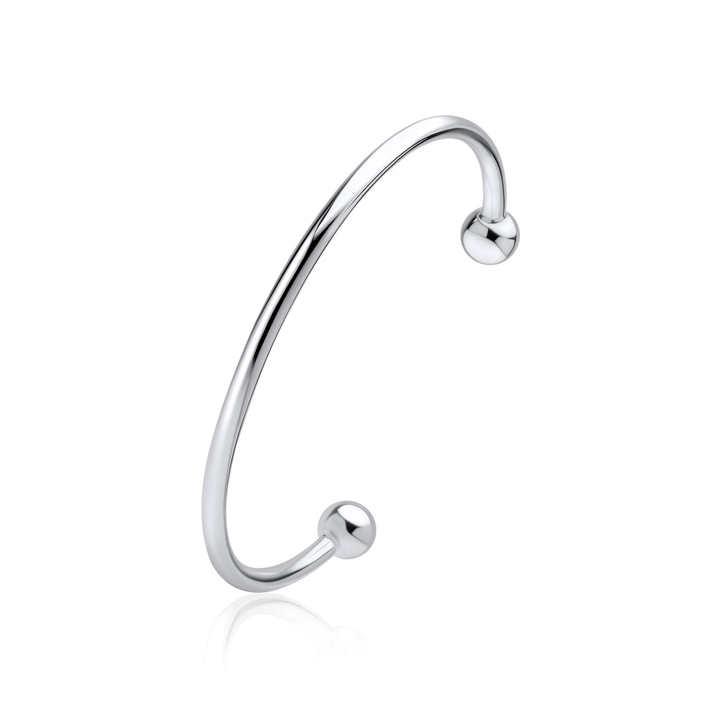 Silver 3mm Solid Round Torque Bangle with 8mm Beads 60mm