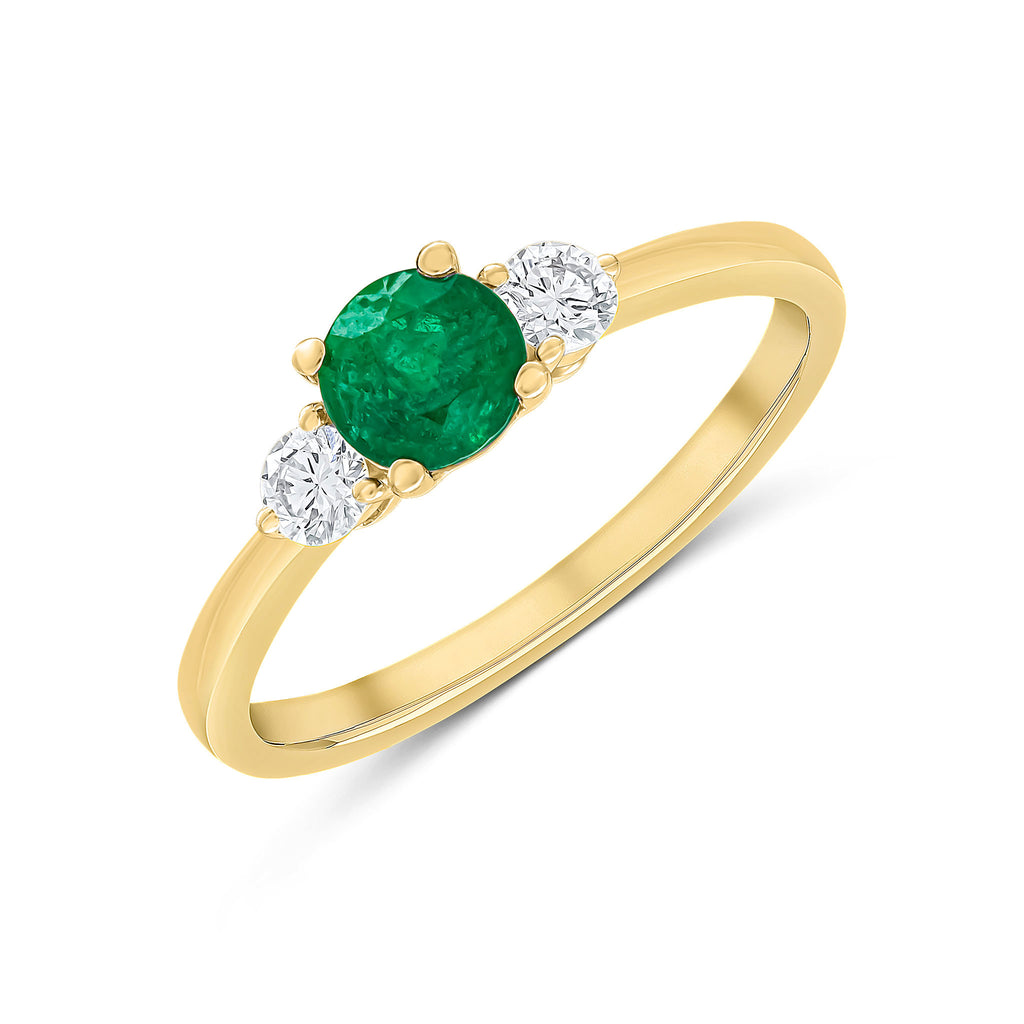 18CT Yellow Gold Round Emerald & Diamond Three Stone Ring 5mm