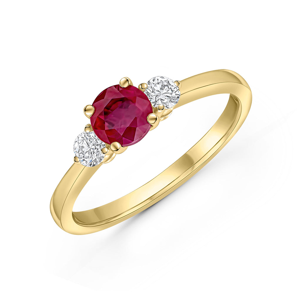 18CT Yellow Gold Round Ruby & Diamond Three Stone Ring 5mm