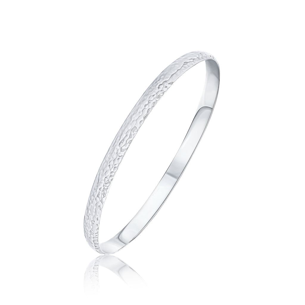 Silver 5.4mm Solid Hammered Court Bangle 65mm