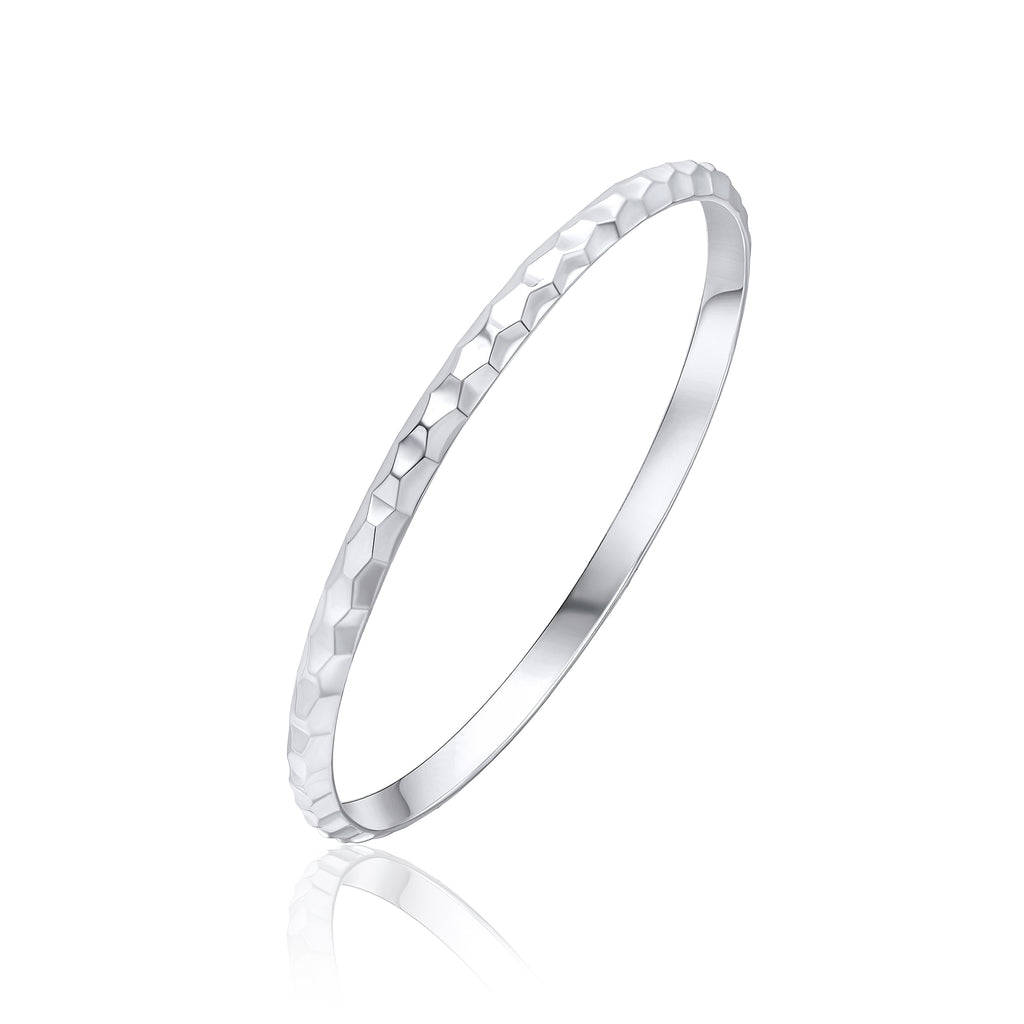 Silver 5mm Solid D Shaped Bangle With Raised Honeycomb Pattern 65mm