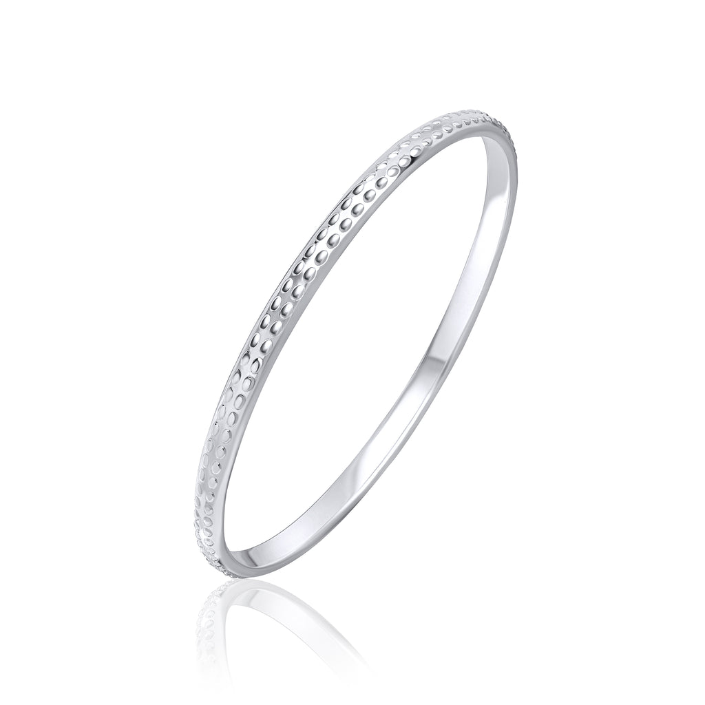 Silver 5mm Solid Round D Shaped Bangle With Oval Beaded Design 65mm