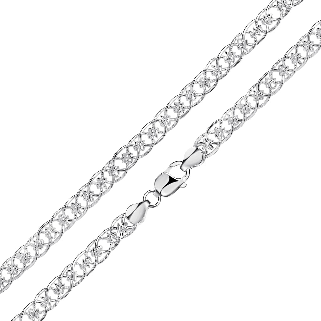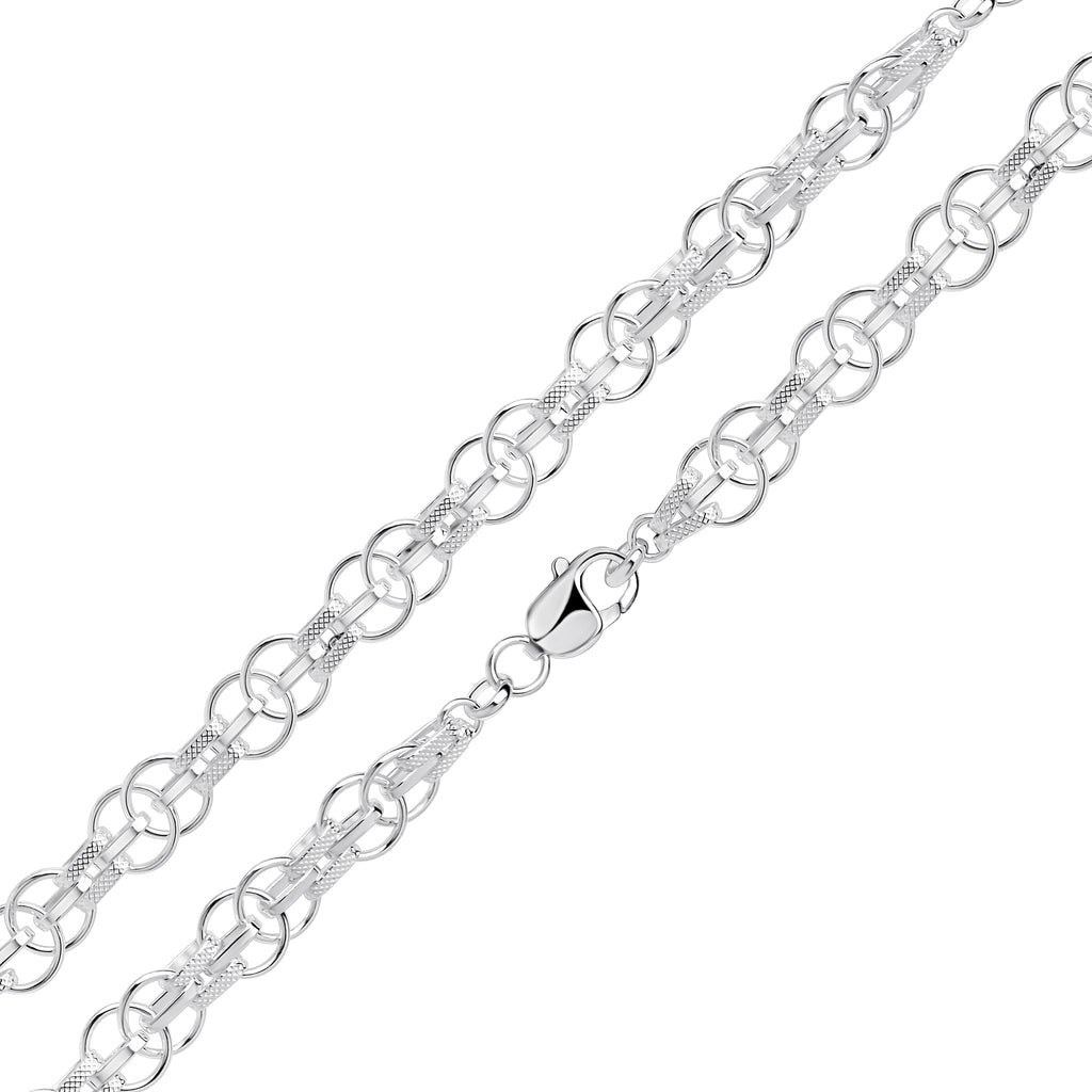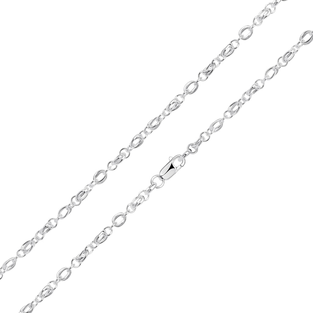 Silver Handmade Polished and Textured Oval with Knot Links Chain Bracelet 7.5"
