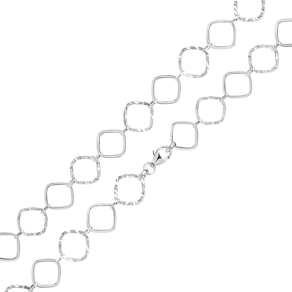 Silver Handmade Polished and Textured Diamond Link Chain Bracelet 7.5"